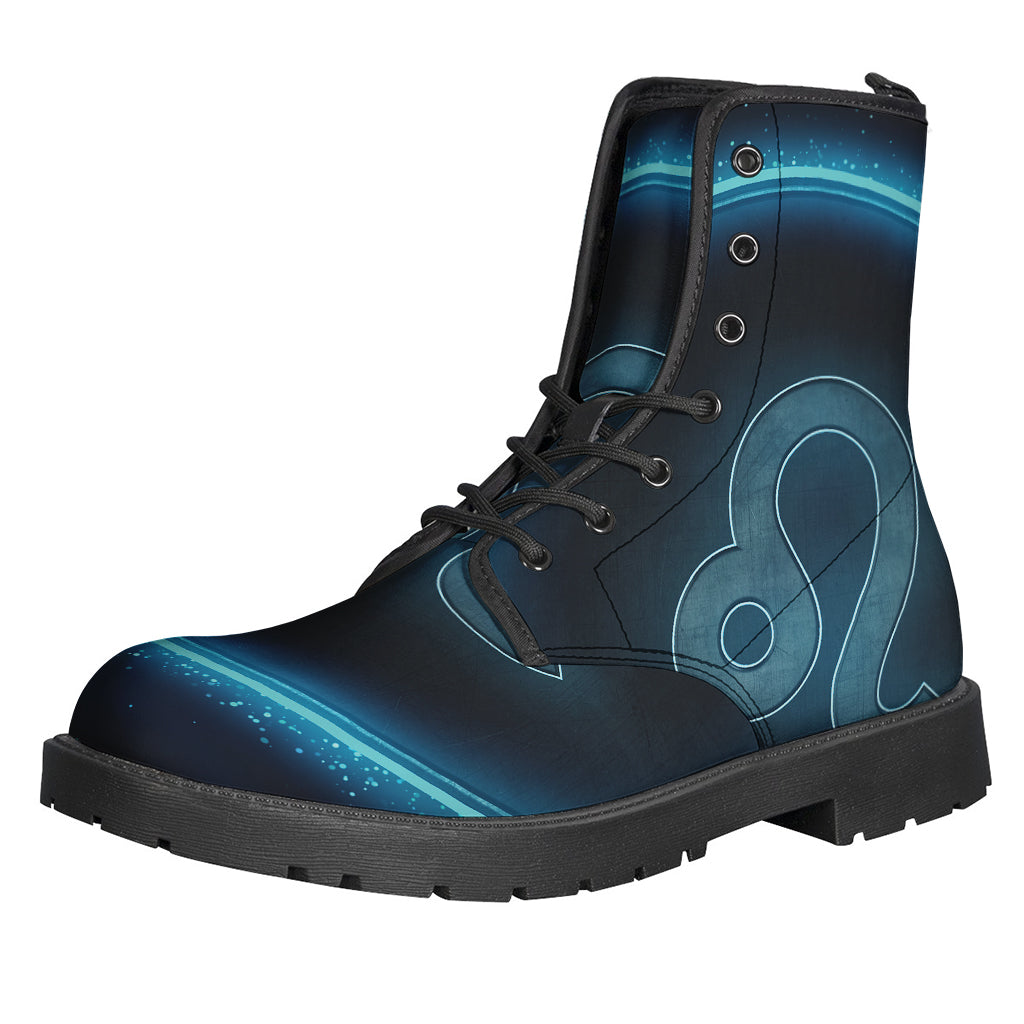Embrace your inner hippie spirit with these Blue Leo Zodiac Sign Print Leather Boots. Featuring a unique and eye-catching design inspired by the cosmic energy of the Leo zodiac sign, these boots are perfect for anyone who loves to express themselves through their fashion choices. Made from lightweight leather, these boots are comfortable and durable, making them ideal for long days of walking, dancing, or simply enjoying life. Add a touch of bohemian flair to your outfit with these stylish and versatile boots that are sure to become a staple in your wardrobe. Whether you're heading to a music festival, going on a road trip, or just hanging out with friends, these hippie-inspired boots will help you stand out from the crowd and make a statement wherever you go.