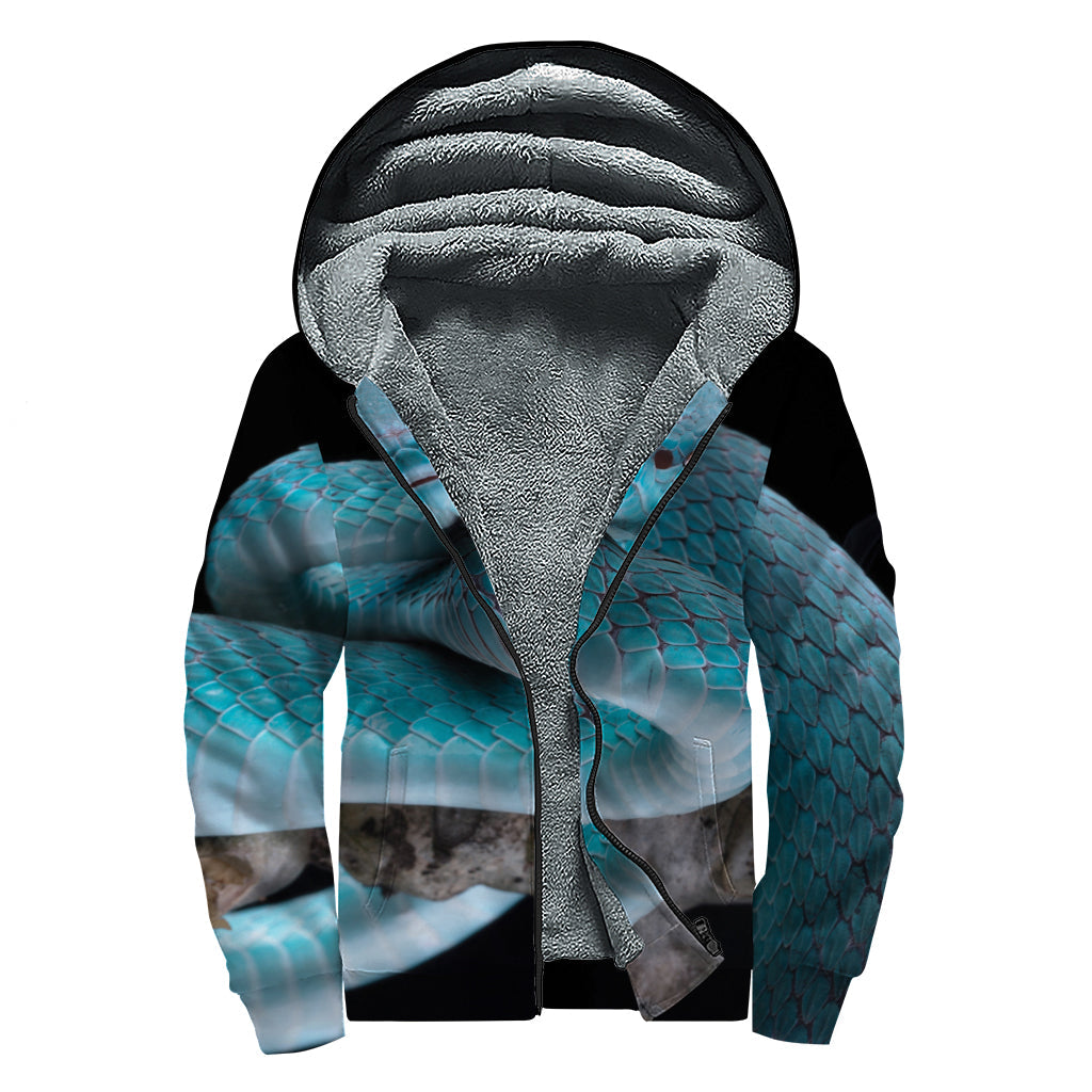 Get cozy and look effortlessly cool in this hippie-inspired Sherpa Lined Zip Up Hoodie from Gear Frost. The hoodie features a striking blue Pit Viper snake print that adds a bold and unique touch to your outfit. The Sherpa lining ensures maximum warmth and comfort, making it perfect for chilly days and evenings. Whether you're headed to a music festival, lounging at home, or running errands around town, this hoodie is the perfect statement piece for any free-spirited hippie enthusiast. Embrace your inner bohemian style with this one-of-a-kind Sherpa Lined Zip Up Hoodie.