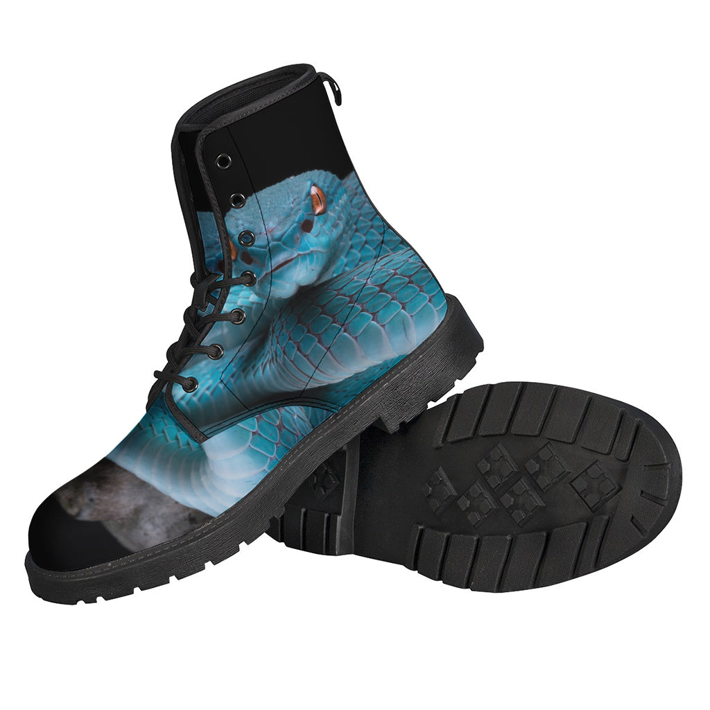 This pair of hippie-inspired Leather Lightweight Boots features a striking blue pit viper snake print design that adds a unique and edgy touch to any outfit. These boots are crafted from high-quality leather, ensuring durability and comfort with every step. The lightweight construction makes them perfect for all-day wear, while the lace-up closure provides a secure fit. Whether you're heading to a music festival or simply want to add a bold statement piece to your wardrobe, these Hippies Leather Lightweight Boots are sure to turn heads and elevate your style.