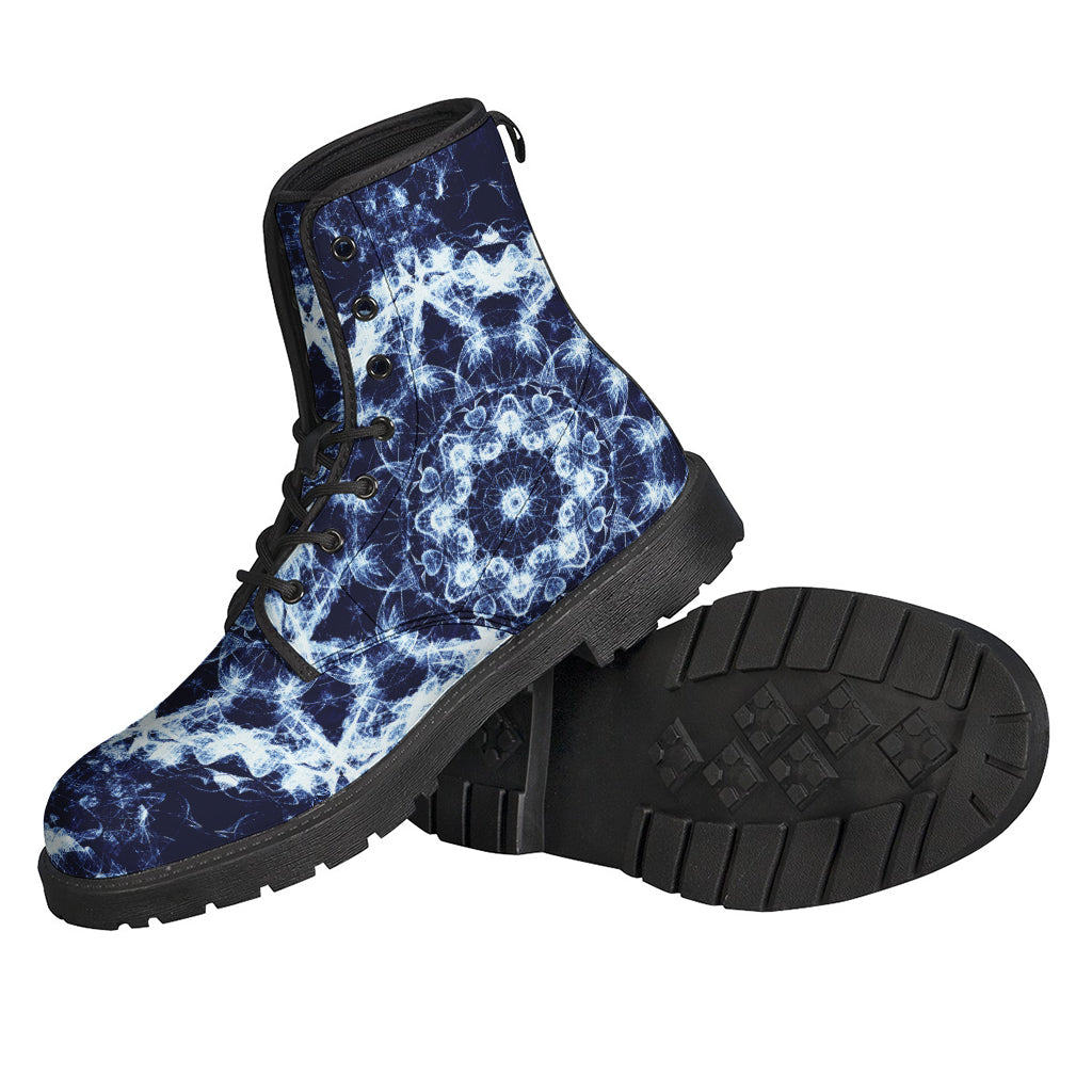 Get ready to embrace your inner hippie with these stylish Leather Lightweight Boots from Gear Frost. Featuring a beautiful mandala print in shades of blue, these boots are perfect for adding a touch of bohemian flair to any outfit. Made from high-quality leather, they are durable and comfortable for all-day wear. The lightweight design makes them easy to walk in, while the trendy hippie style adds a unique touch to your look. Whether you're heading to a music festival or just want to add a funky touch to your everyday style, these boots are a must-have for any free-spirited fashionista.