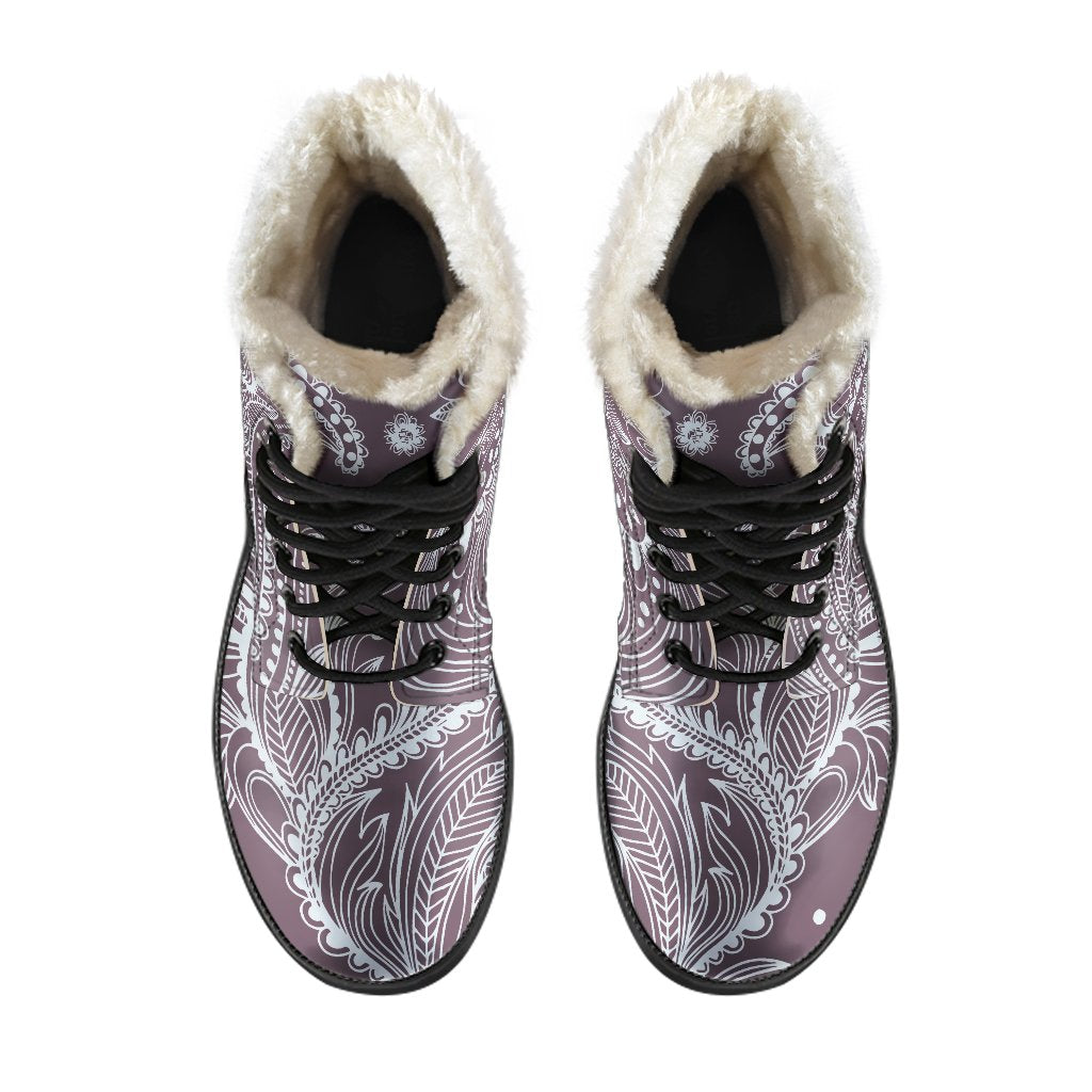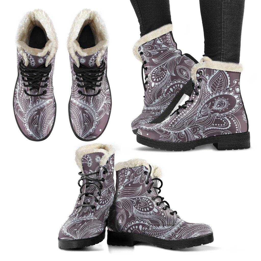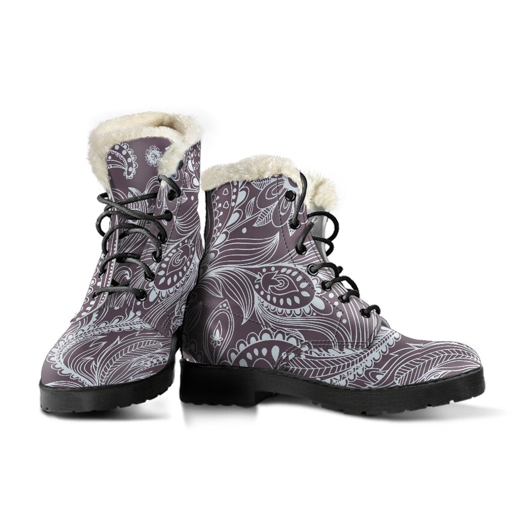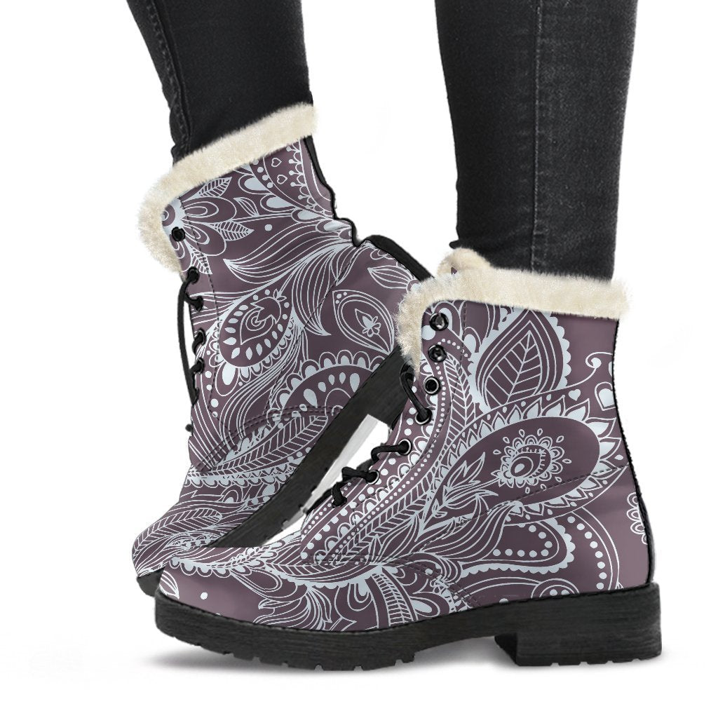 Embrace your inner flower child with these Umber Floral Bohemian Pattern Print Faux Fur Leather Boots. These boots are perfect for adding a touch of retro flair to any outfit, whether you're hitting up a music festival or just running errands around town. The faux fur lining will keep your feet cozy and warm, while the leather exterior adds a touch of sophistication. With a unique bohemian pattern print, these boots are sure to make a statement wherever you go. Whether you're a full-fledged hippie or just looking to add some groovy vibes to your wardrobe, these boots are a must-have for any free spirit.