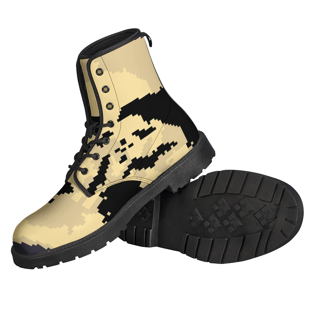 Embrace your inner hippie with these Leather Lightweight Boots featuring a unique 8-bit pixel Halloween bat print. Made from high quality leather, these boots are perfect for adding a touch of retro style to your wardrobe. The lightweight design makes them comfortable for all-day wear, while the durable construction ensures long-lasting use. Whether you're heading to a music festival or just want to add a bit of bohemian flair to your outfit, these boots are sure to make a statement.