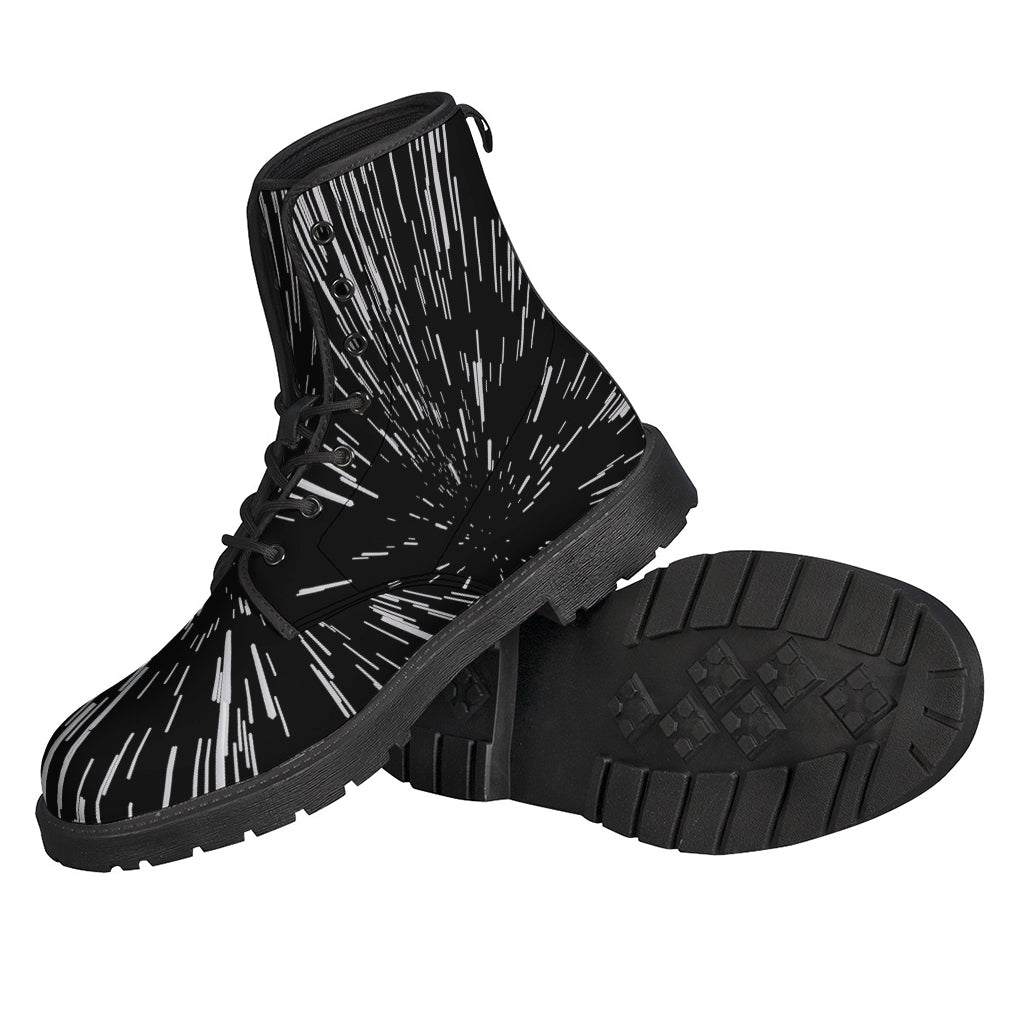 Embrace your inner bohemian with these stylish hippie Leather Lightweight Boots from Gear Frost. The black and white Lightspeed print adds a unique and edgy touch to these comfortable and lightweight boots. Whether you're headed to a music festival, a day out in nature, or just looking to add a touch of hippie flair to your everyday style, these boots are the perfect choice. Made with high-quality leather, these boots are durable and built to last, ensuring you can enjoy them for years to come. Get ready to step out in style and show off your free-spirited personality with these hippie Leather Lightweight Boots.
