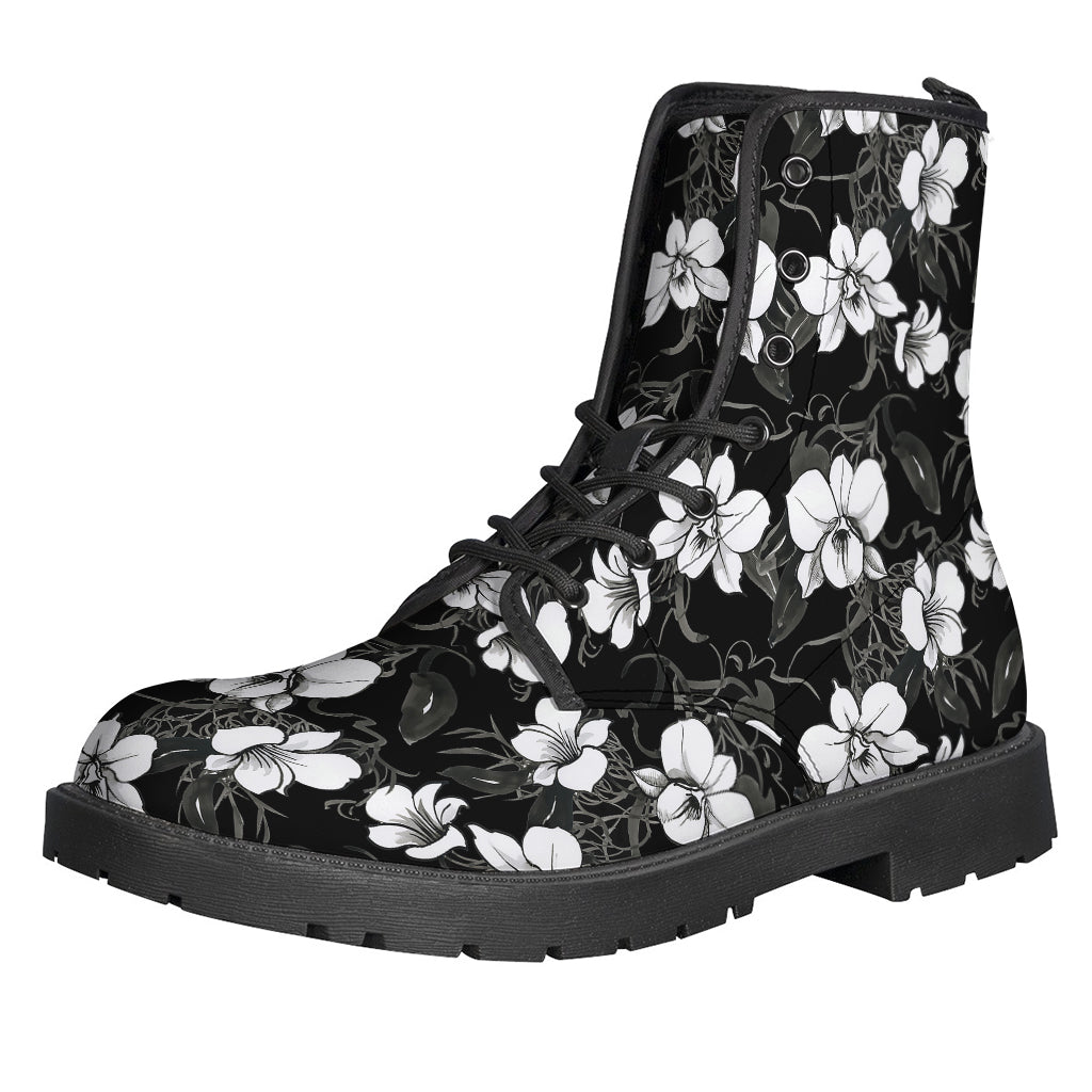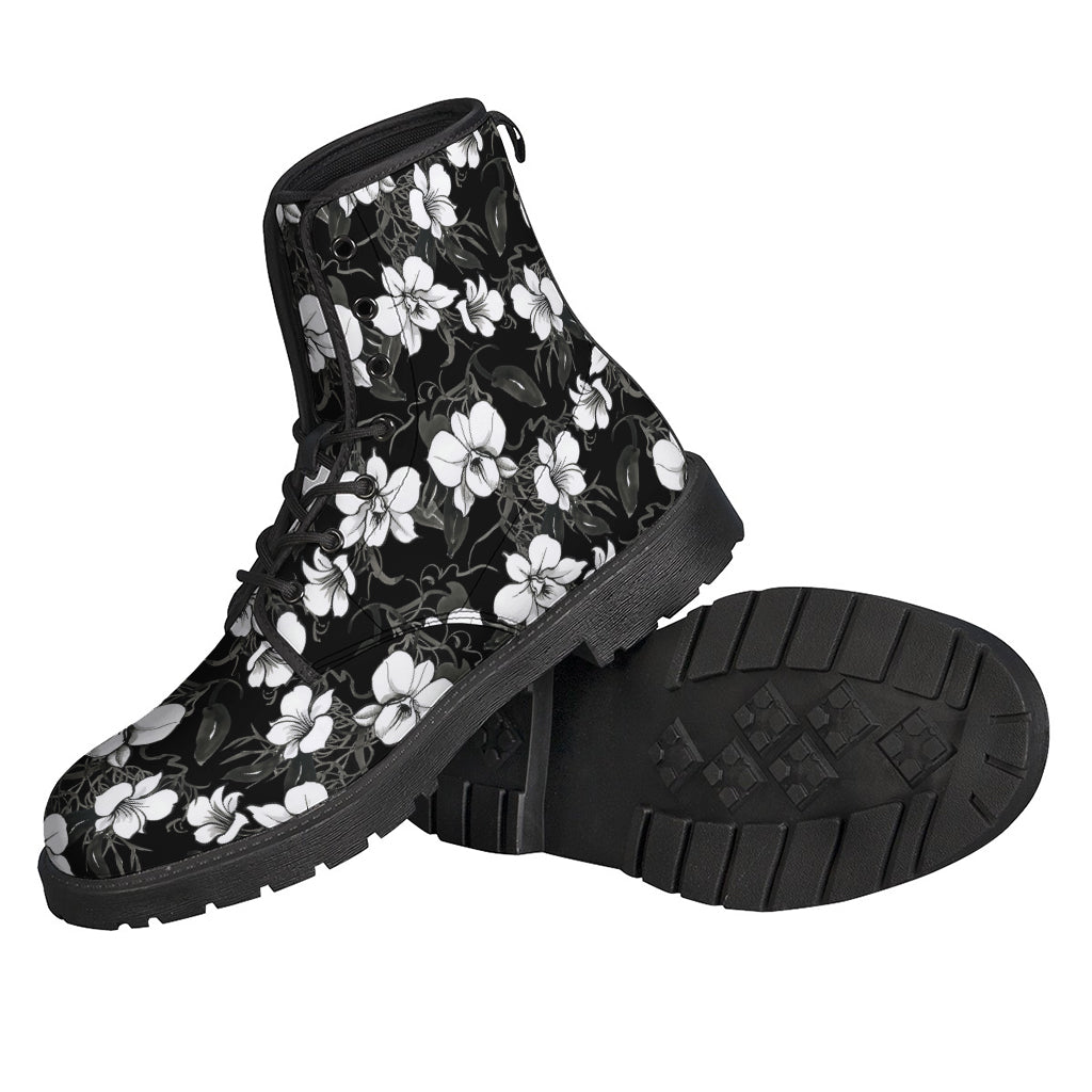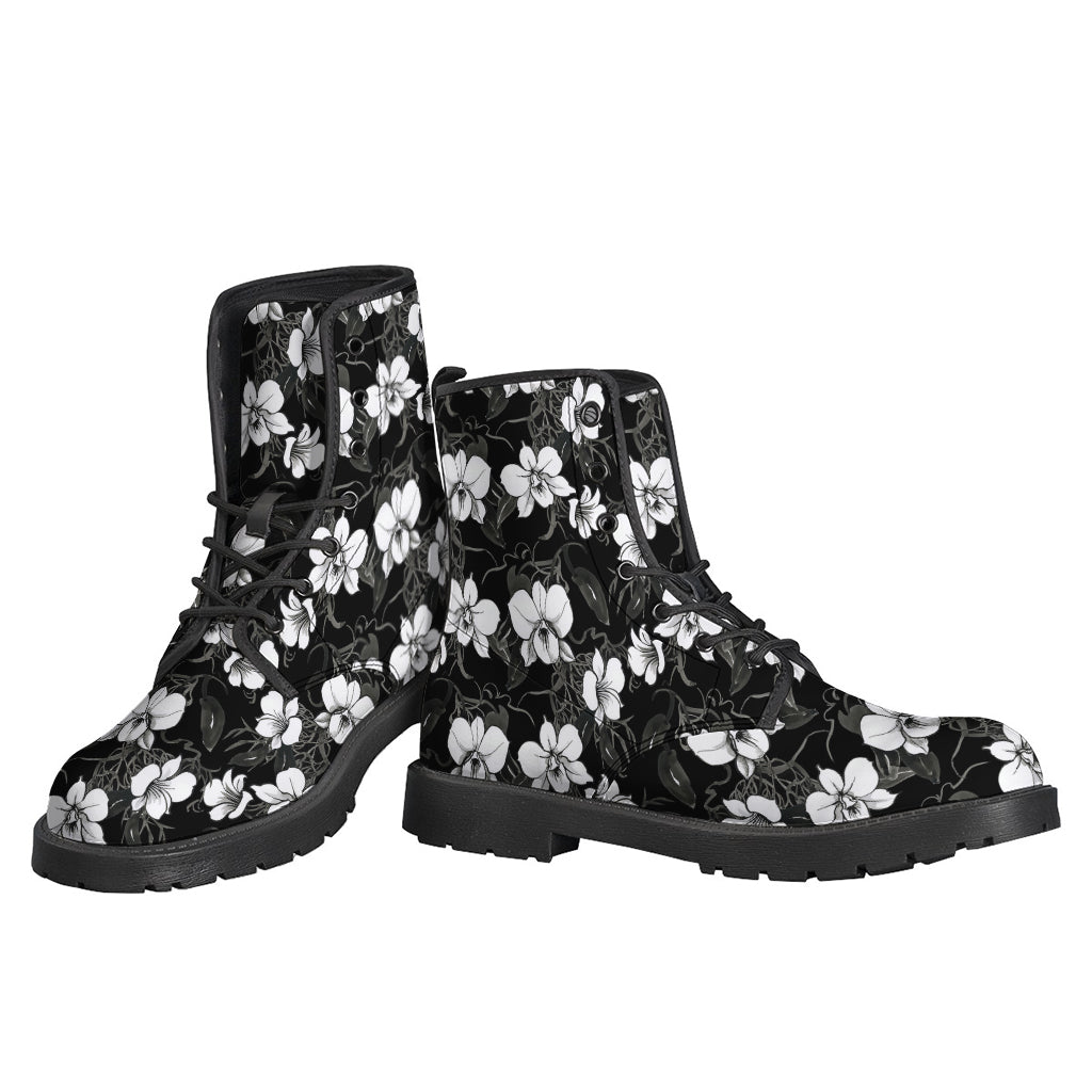 These black and white Cattleya pattern print leather boots are a must-have for any stylish hippie. The lightweight design makes them perfect for all-day wear, while the unique pattern adds a touch of bohemian flair to any outfit. These boots are perfect for festivals, concerts, or everyday wear, and are sure to become a staple in your wardrobe. The high-quality leather construction ensures durability and comfort, making them a practical and fashionable choice for any hippie looking to add a little edge to their style.