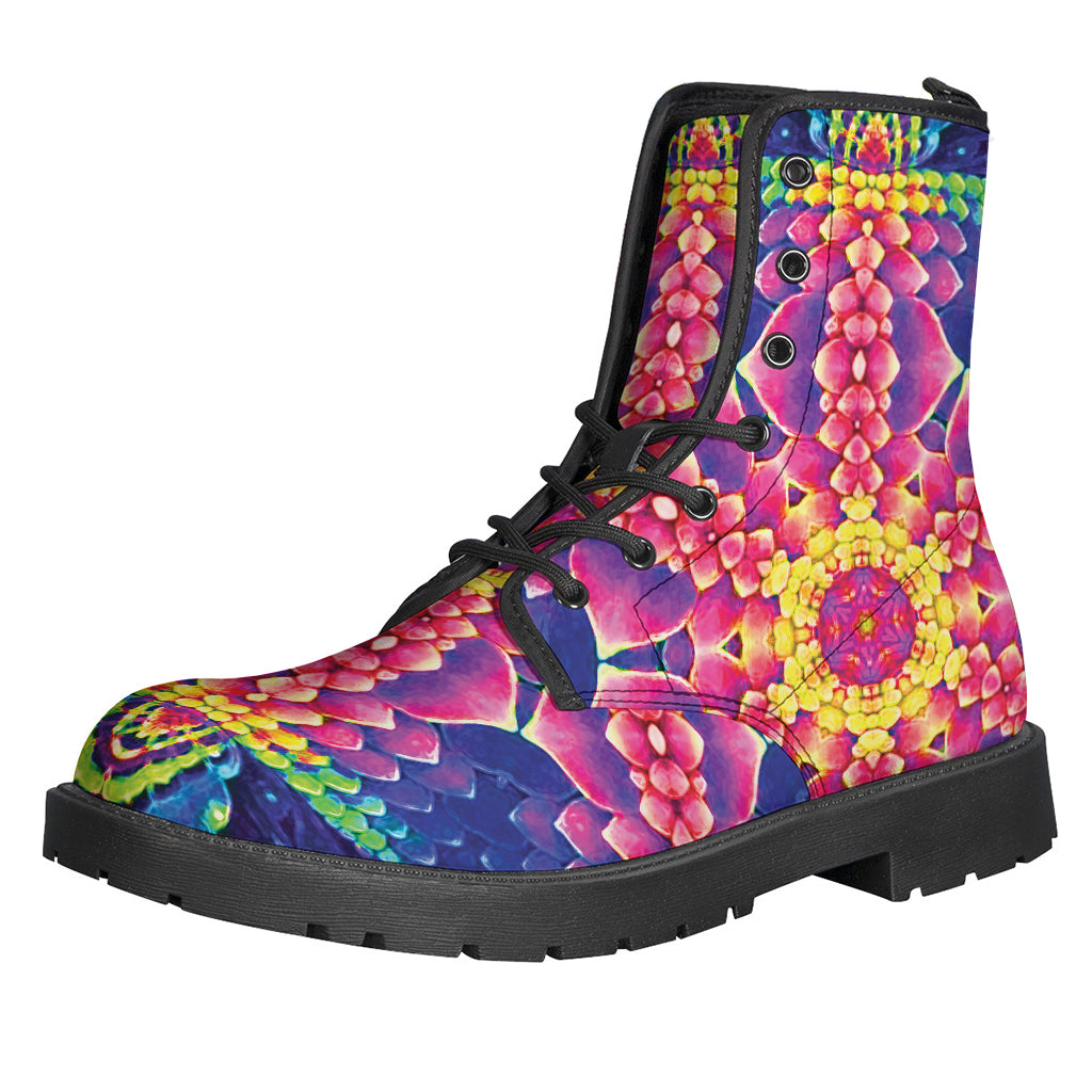 Boho Chic: Colorful Psychedelic Kaleidoscope Leather Boots for Hippie Souls - 1