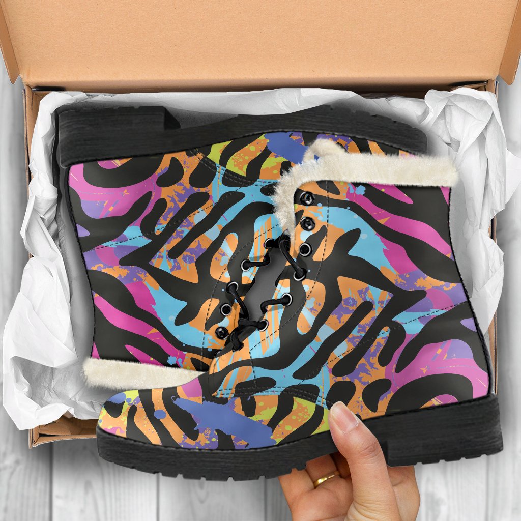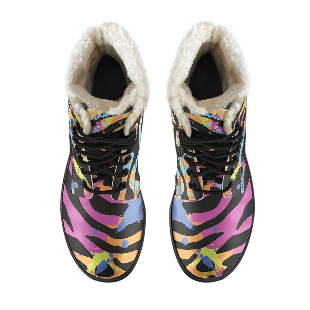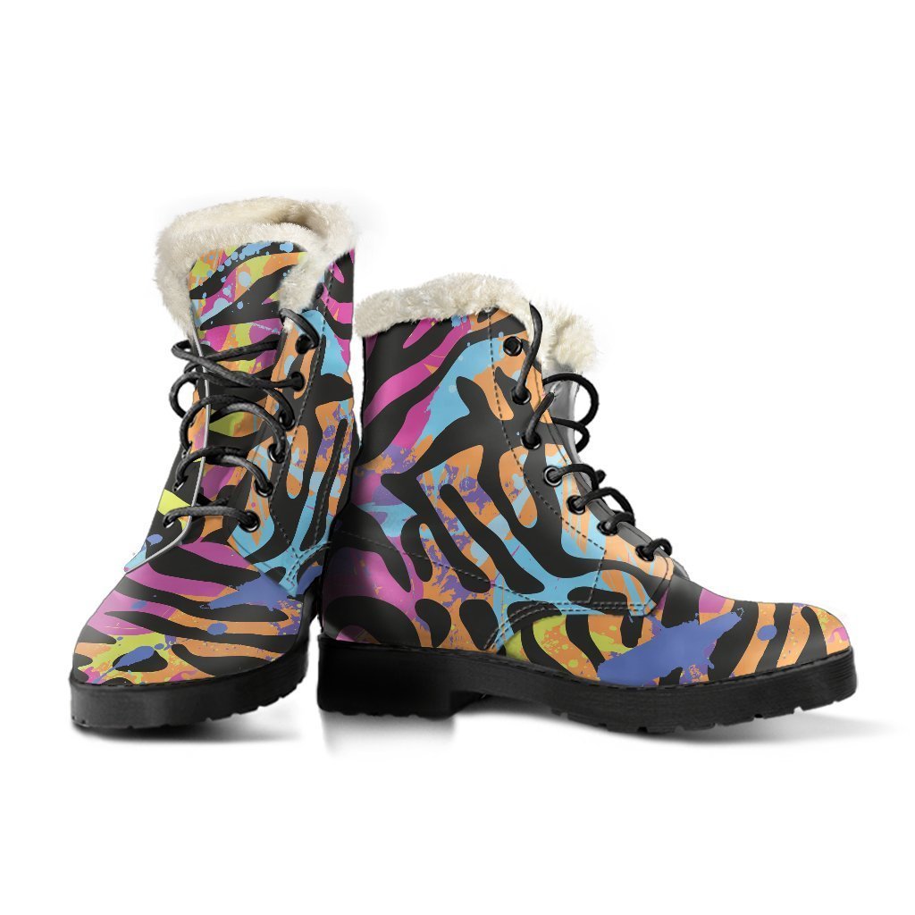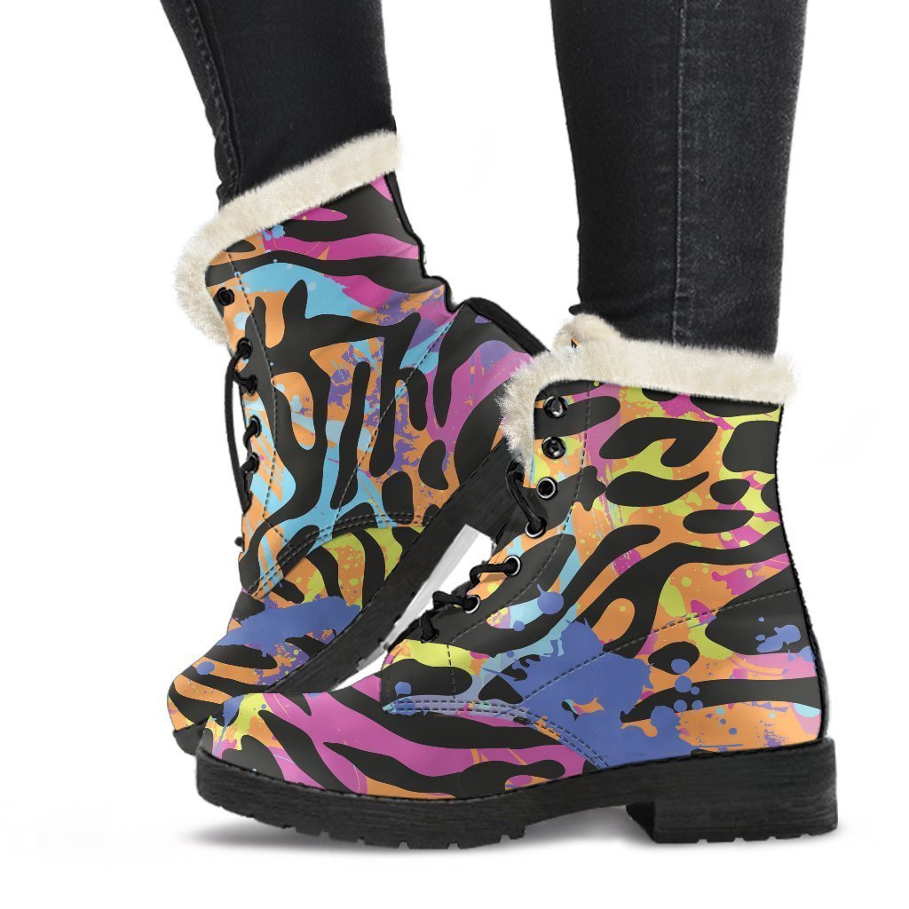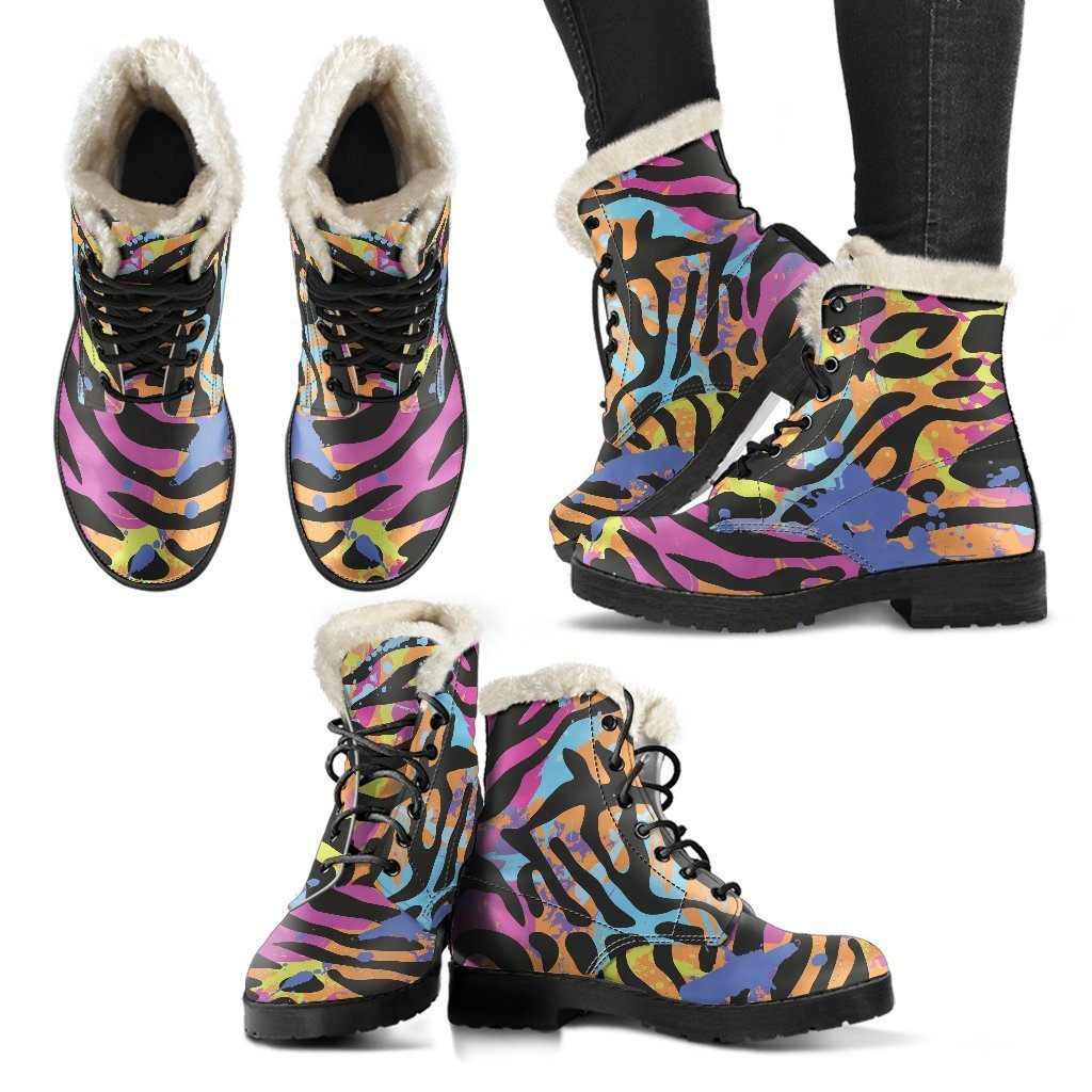 Boho Chic Faux Fur Leather Boots with Colorful Zebra & Leopard Print