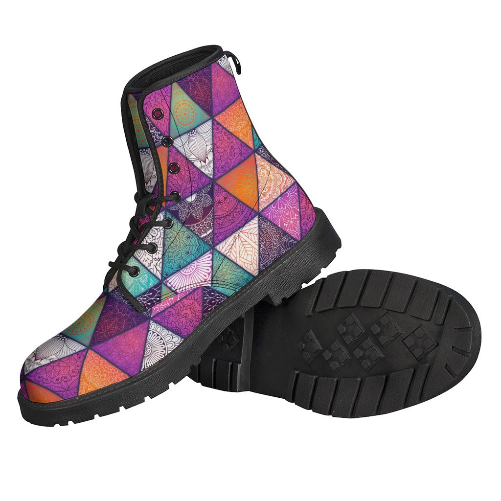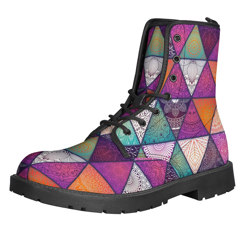 These Hippies Leather Lightweight Boots are the perfect blend of bohemian style and comfort. The unique Triangle Bohemian Mandala pattern print on the leather gives these boots a one-of-a-kind look that is sure to make a statement. The lightweight design makes them perfect for all-day wear, while the durable construction ensures long-lasting quality. Whether you're walking through a music festival or just strolling around town, these boots are sure to add a touch of hippie flair to any outfit. Available in a variety of sizes, these boots are a must-have for any free spirit looking to add some groovy vibes to their wardrobe.