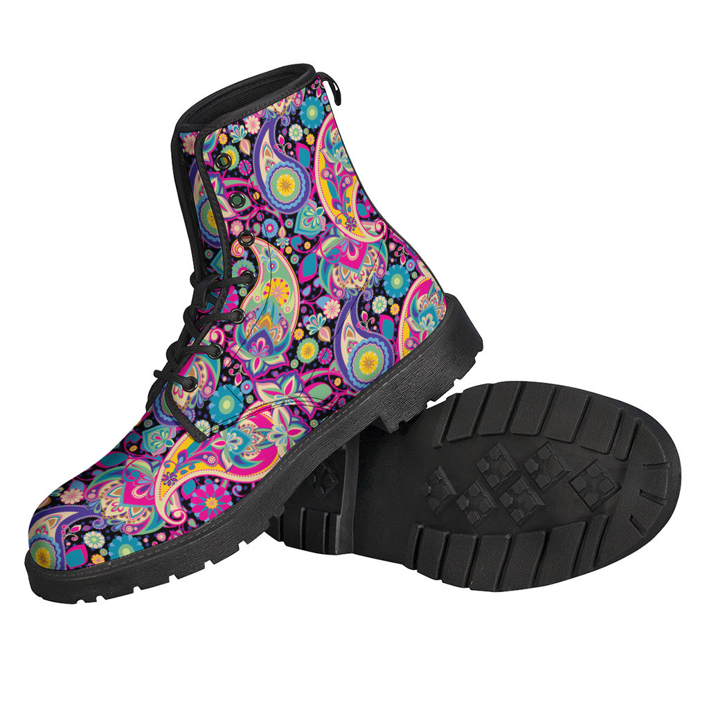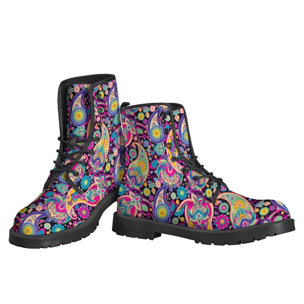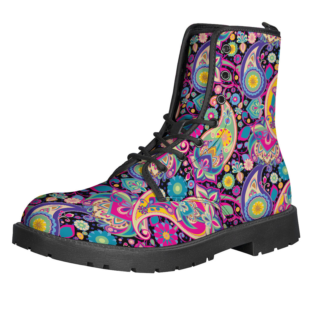 Step out in style with these Bohemian Paisley Pattern Print Leather Boots. These lightweight boots are perfect for hippies who want to add a touch of unique and bohemian flair to their wardrobe. Featuring a vibrant paisley pattern print, these leather boots are sure to stand out and make a statement wherever you go.