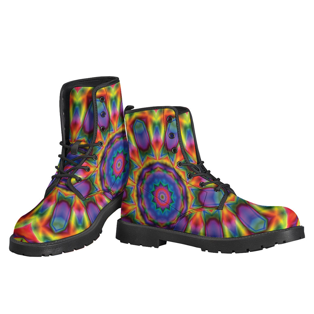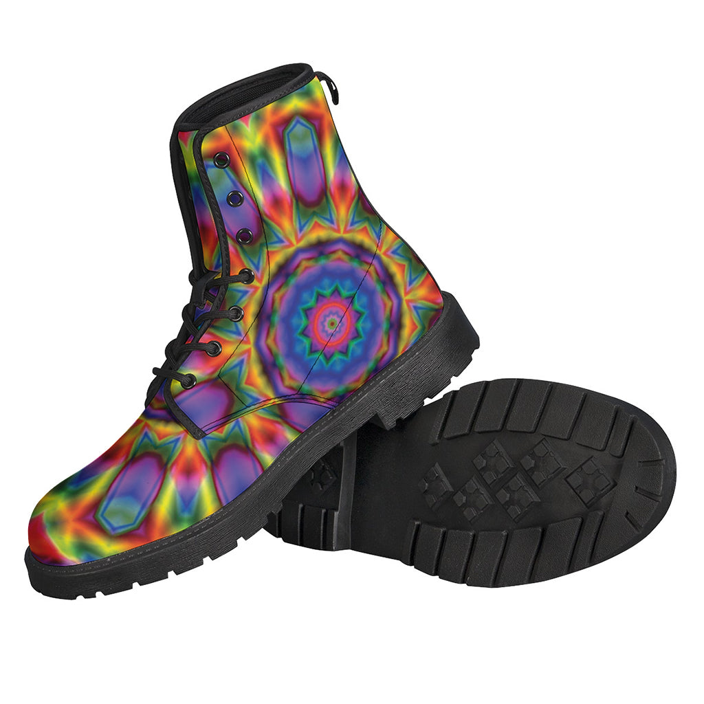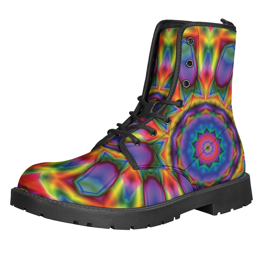 These hippie-inspired Leather Lightweight Boots are perfect for those who embrace the bohemian style. Made from high-quality leather, these boots feature a colorful kaleidoscope print that adds a fun and unique touch to any outfit. The lightweight construction makes them comfortable for all-day wear, whether you're dancing at a music festival or exploring the great outdoors. With their free-spirited design and durable materials, these boots are sure to become a staple in any hippie's wardrobe.