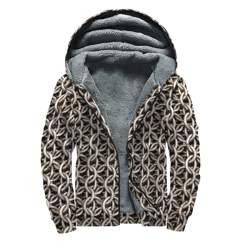 Embrace your inner hippie spirit with this unique Sherpa Lined Zip Up Hoodie from Gear Frost. The hoodie features a striking chainmail ring print design that sets it apart from the ordinary. The cozy Sherpa lining will keep you warm and comfortable, while the zip-up style allows for easy layering. Perfect for chilly days or cozy nights around the campfire, this hoodie is a stylish and practical addition to any free-spirited wardrobe. Channel your inner bohemian with this one-of-a-kind hippie-inspired hoodie.