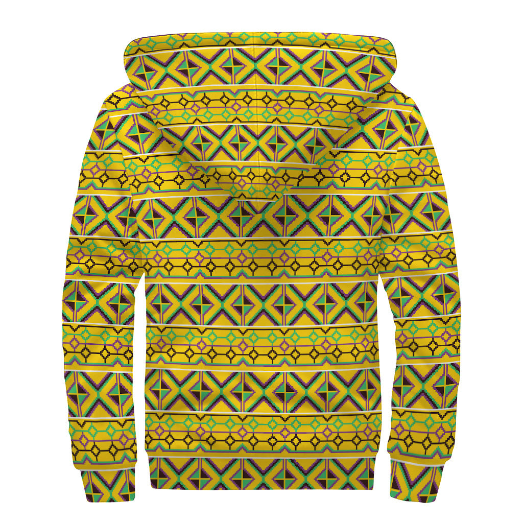 This Sherpa Lined Zip Up Hoodie is a perfect addition to any hippie's wardrobe. The hoodie features a vibrant Asante Kente pattern print, adding a unique and colorful touch to your look. The soft Sherpa lining provides extra warmth and comfort, perfect for chilly days or nights around a campfire. With its relaxed fit and cozy design, this hoodie is ideal for embracing the free-spirited style of the hippie subculture. Whether you're headed to a music festival, a drum circle, or just hanging out with friends, this Sherpa Lined Zip Up Hoodie will keep you warm and stylish all day long.
