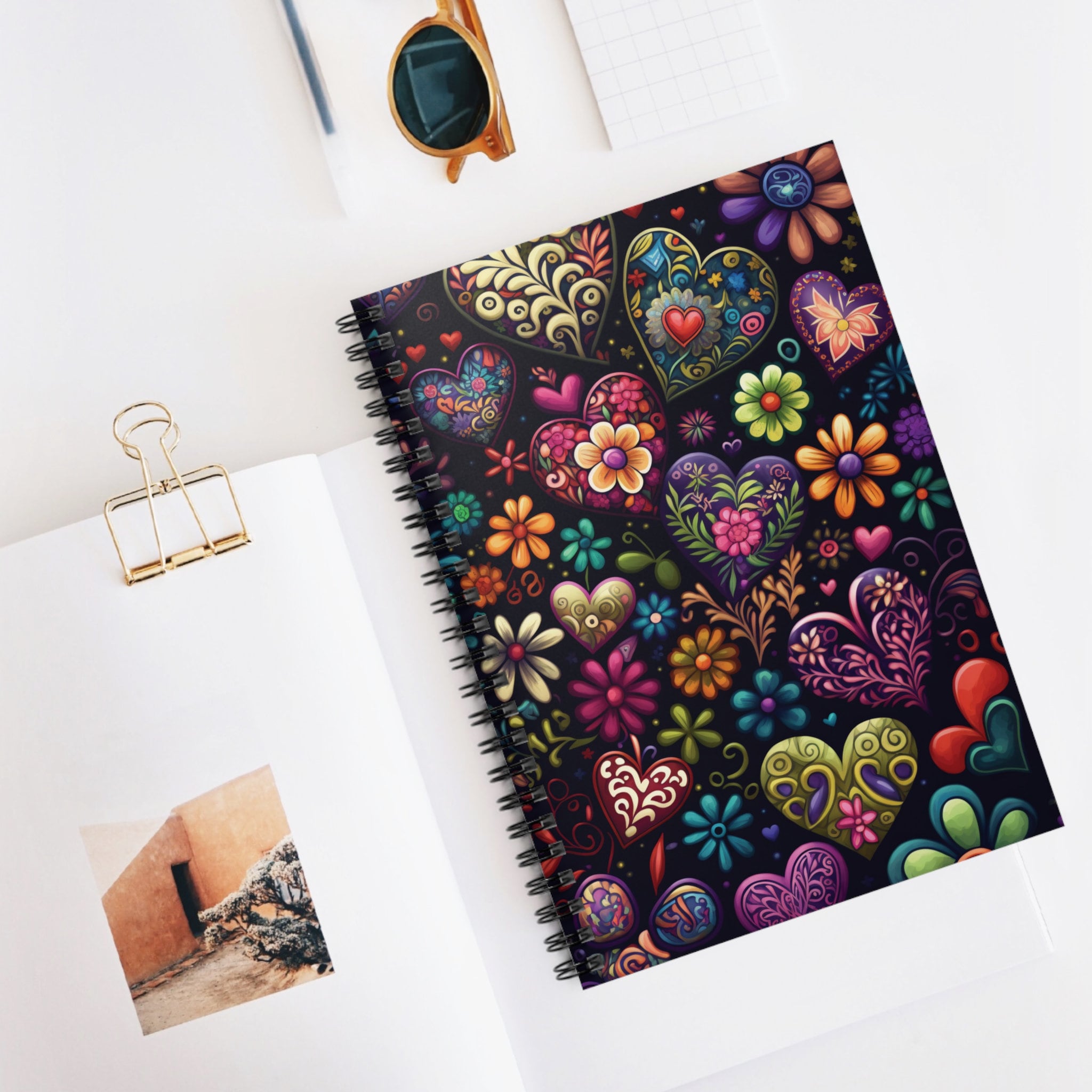 Colorful Trending Floral Heart Journal Notebook - 6x8 Ruled Line Paper - Perfect Gift Idea for Her - Elegant Stylish Design