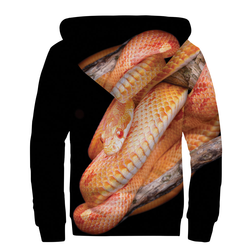 Corn Snake Print Sherpa Lined Zip Up Hoodie: Embrace Your Inner Hippie Style!