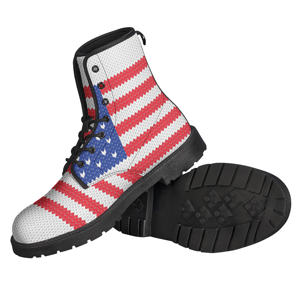 The Hippies Leather Lightweight Boots are a perfect blend of style and comfort for those who love the hippie fashion aesthetic. Made from high-quality leather, these boots feature a knitted American flag print that adds a unique and patriotic touch to the design. The lightweight construction makes them easy to wear all day long, while the durable materials ensure that they will last for many seasons to come. With their funky, retro vibe, these boots are sure to be a standout piece in your wardrobe. Whether you're heading to a music festival, a vintage market, or just out and about town, these Hippies Leather Lightweight Boots are the perfect choice for any free-spirited individual.