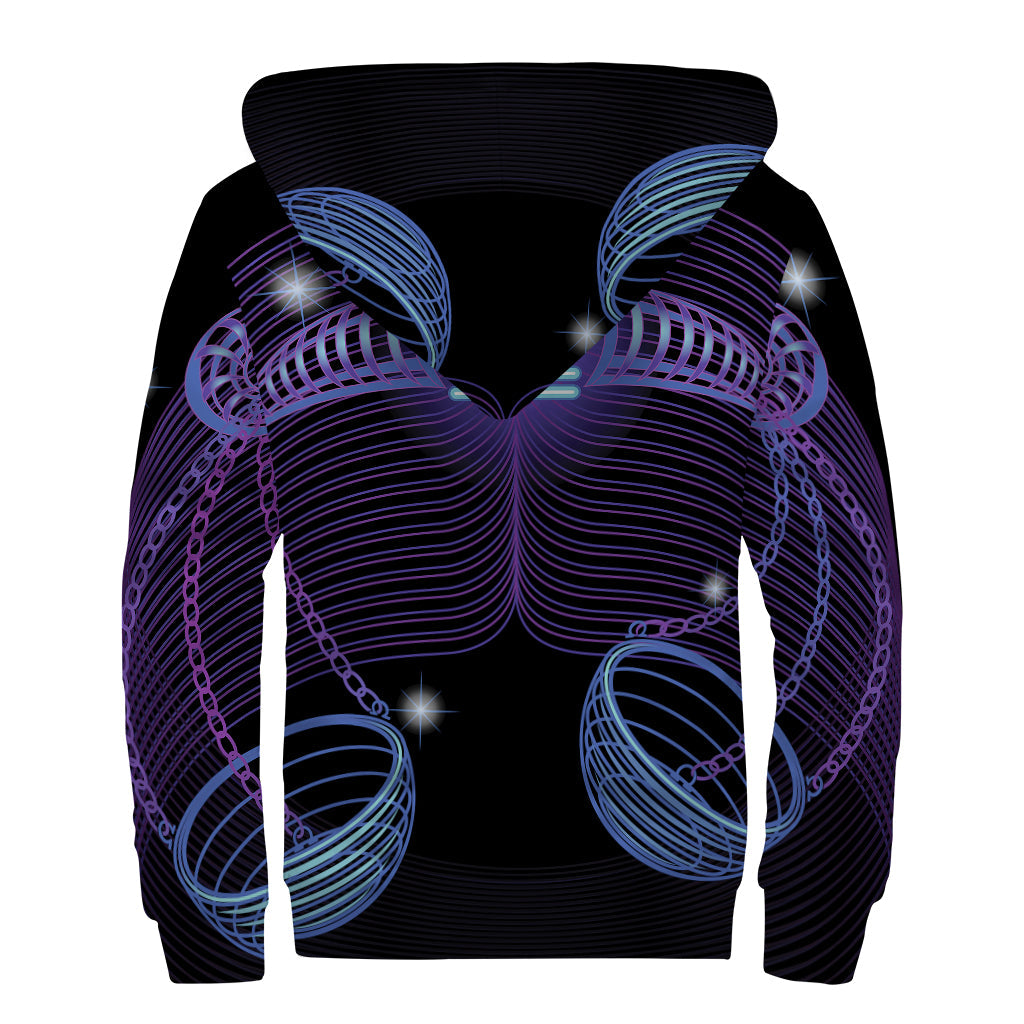 This Dark Libra Zodiac Sign Print Sherpa Lined Zip Up Hoodie is perfect for those who follow the hippie style. The hoodie features a unique astrological design that is sure to make a statement. The sherpa lining provides extra warmth and comfort, making it ideal for chilly days and nights. The zip-up style and hood add functionality and style to this trendy piece. Whether you're heading to a festival, a bonfire, or just hanging out with friends, this hoodie is sure to keep you cozy and stylish.