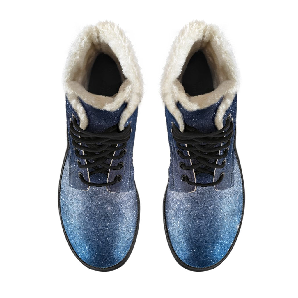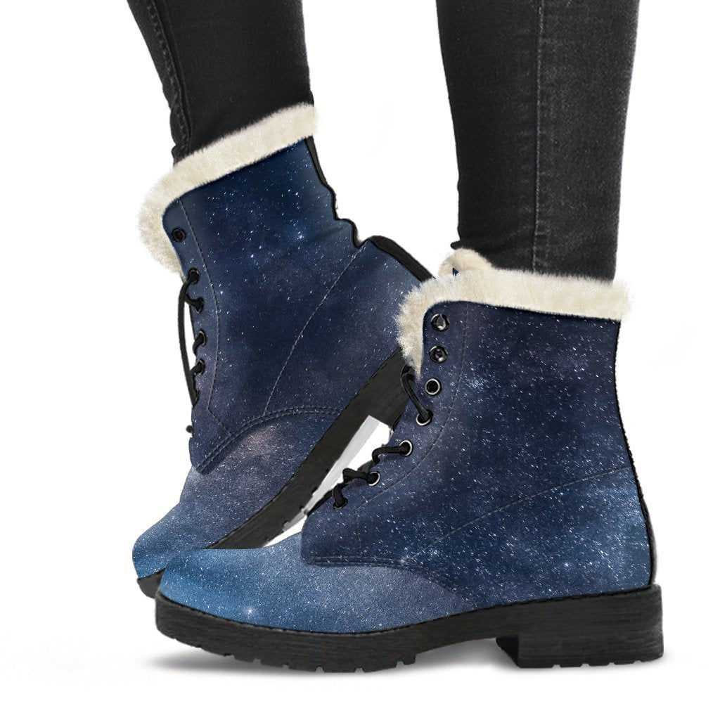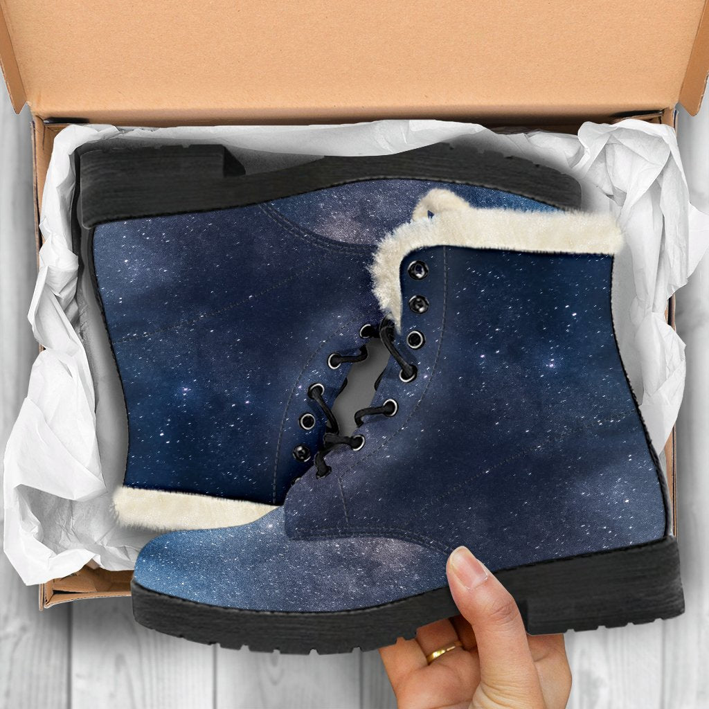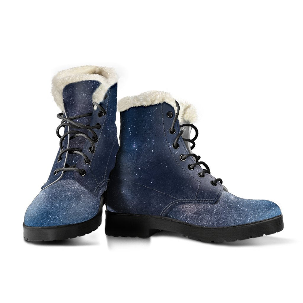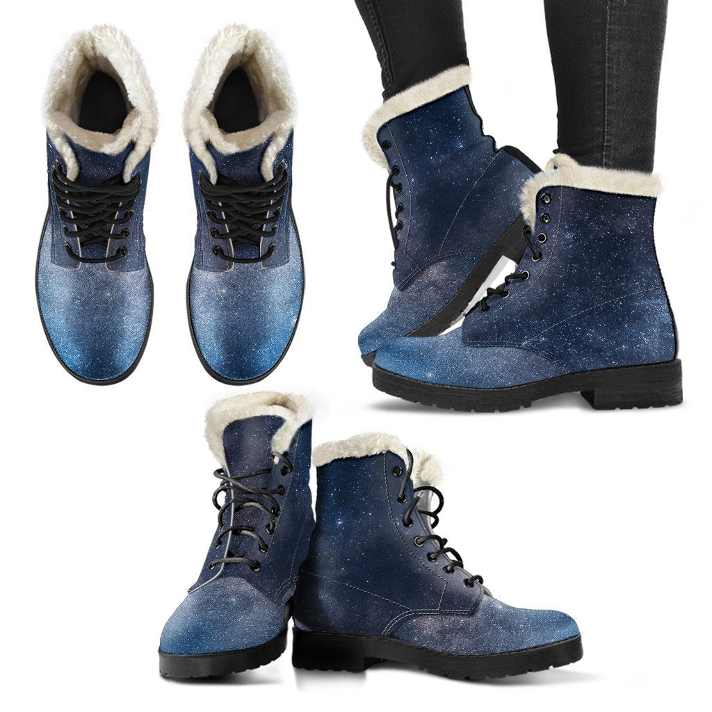 Dark Nebula Universe Galaxy Space Print Faux Fur Leather Boots for the Groovy Hippie Soul