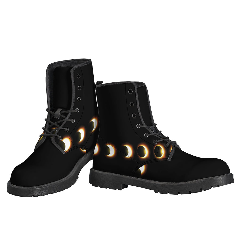 These Hippies Leather Lightweight Boots are the perfect blend of comfort and style. Made from high-quality leather, these boots feature a unique eclipse phases print design that adds a touch of bohemian flair to any outfit. The lightweight construction makes them perfect for all-day wear, while the sturdy sole provides traction and support. Whether you're exploring the great outdoors or dancing at a music festival, these boots will keep you looking and feeling your best. Embrace your inner hippie and step out in style with these stylish boots.