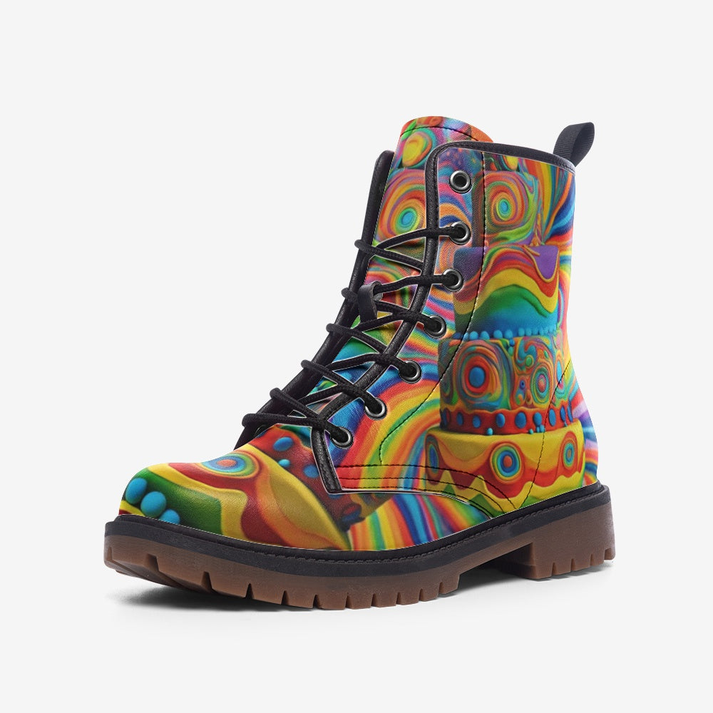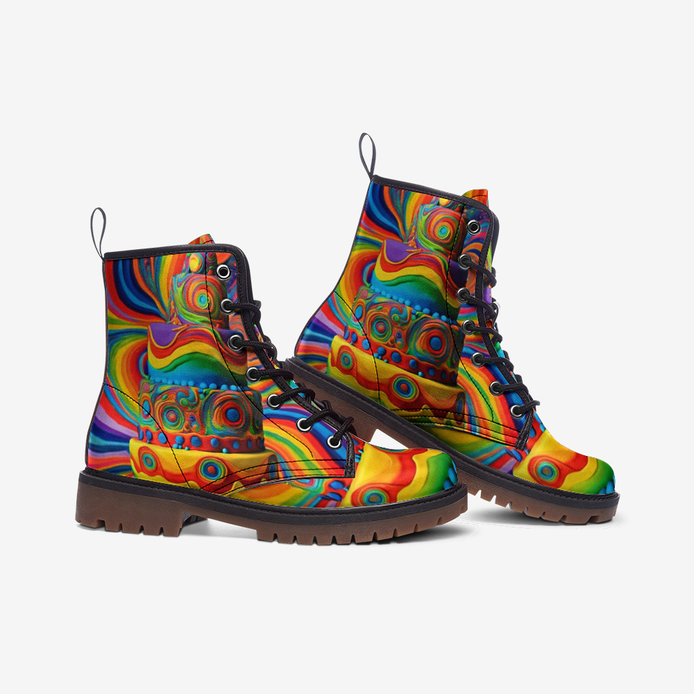 Celebrate with every step in our Lightweight Abstract Cake Leather Boots, designed for free-spirited hippies. Featuring whimsical artwork inspired by fun occasions, these boots combine creativity and comfort. Crafted from premium leather, they offer durability and style perfect for festivals and everyday wear. Enter a world of celebration and expression with these unique shoes, crafted to express the spirit of freedom and individuality.