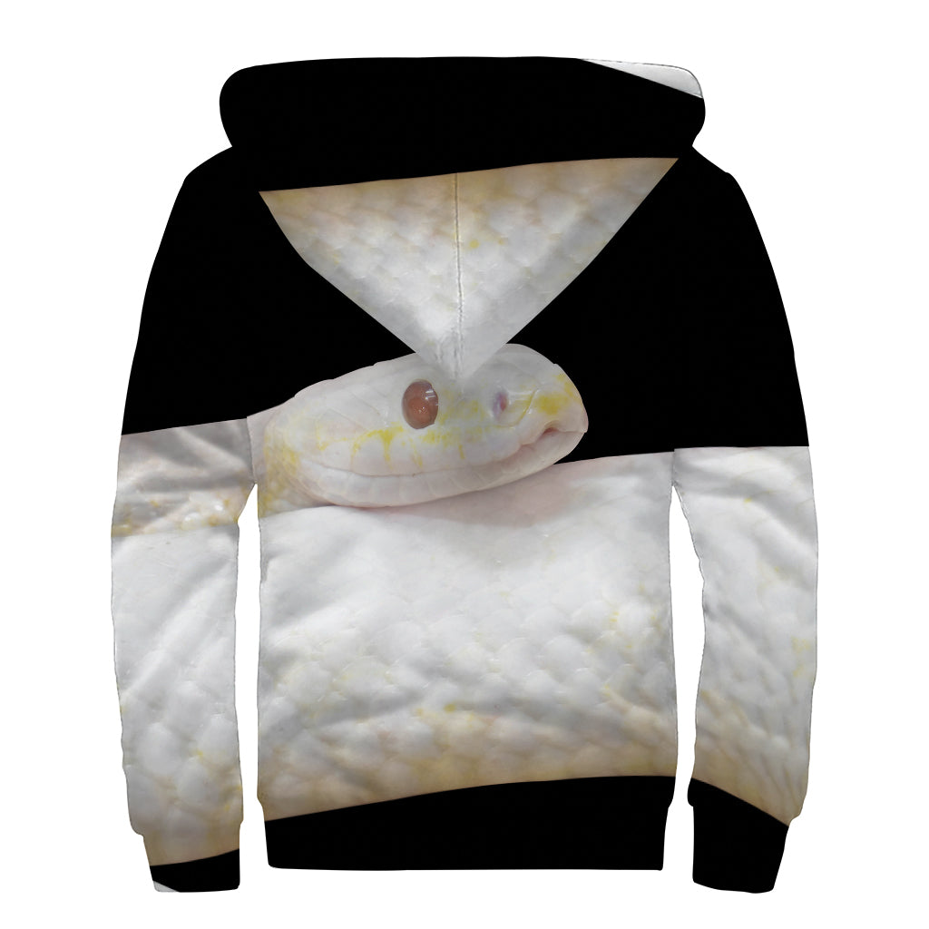 Stay warm and cozy in this unique Albino Snake Print Sherpa Lined Zip Up Hoodie, perfect for the free-spirited and laid-back hippie style. This hoodie features a striking albino snake print design that is sure to turn heads, while the sherpa lining adds an extra layer of comfort and warmth. The zip-up style makes it easy to throw on over your favorite tie-dye shirt or bohemian dress. Whether you're heading to a music festival or just hanging out with friends, this hoodie is a must-have for any hippie fashionista.