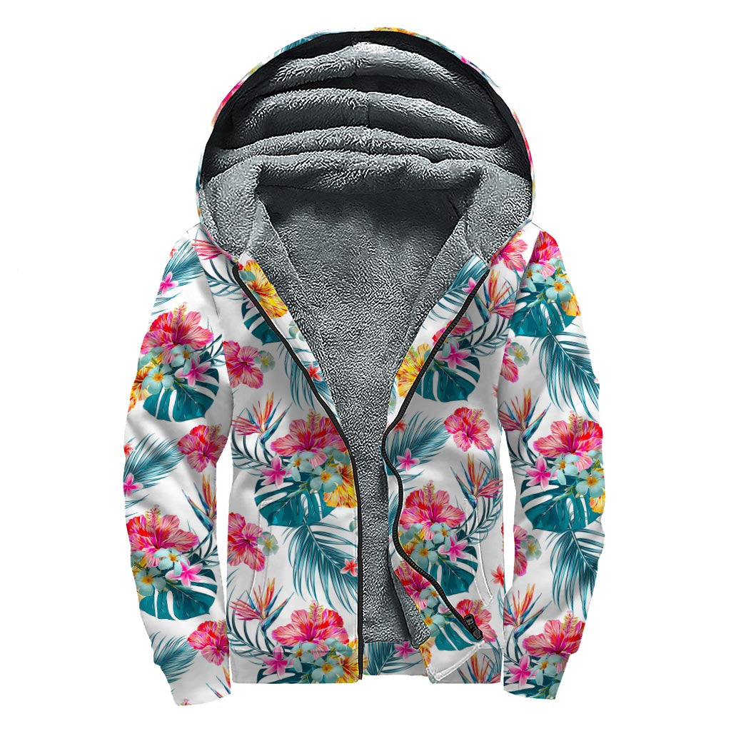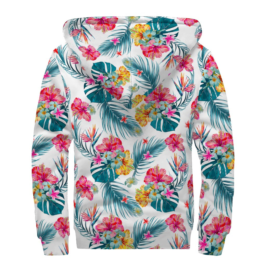 Emerald Blossoms - Aloha Adventure: Sherpa Lined Zip Up Hoodie for Free-Spirited Hippies