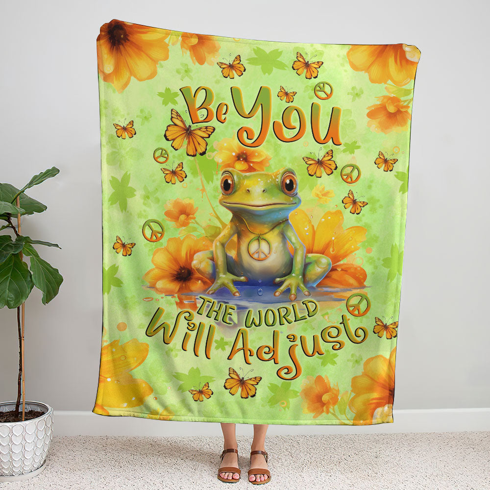 Emerald Blossoms - Be You The World Will Adjust Frog Fleece Blanket For Hippies