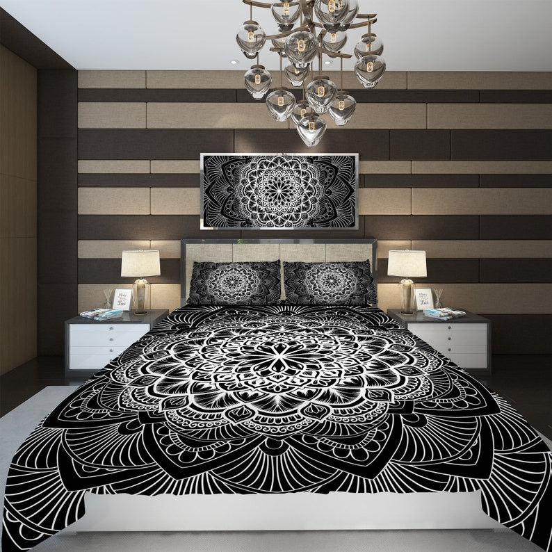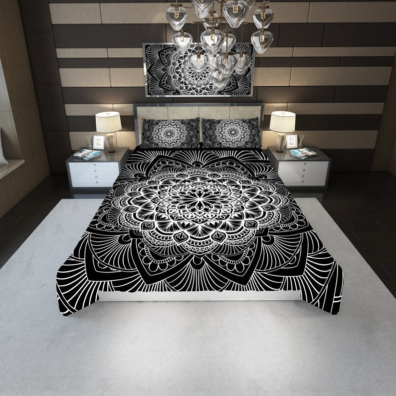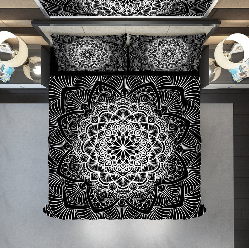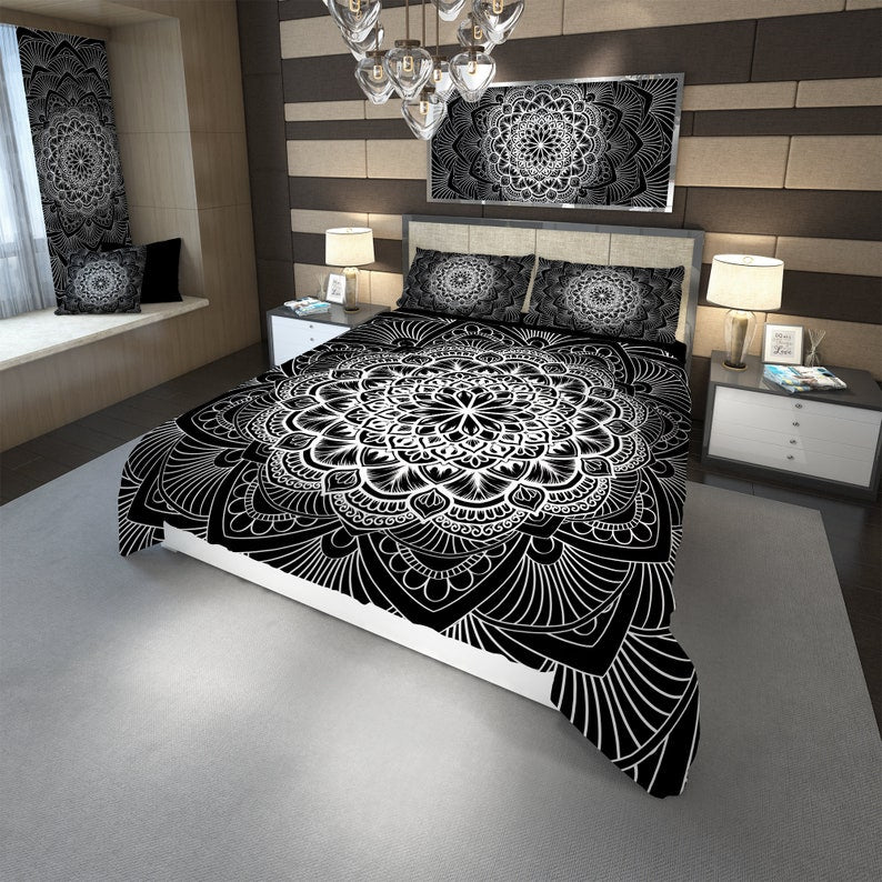 Elevate your space with the Black and White Mandala Bedding Set, designed for those who embrace the bohemian lifestyle. Featuring a striking black and white mandala pattern, this set combines bold contrast with intricate design for a timeless, artistic look. Crafted from soft, durable fabrics, comfort and style are guaranteed. Transform your bedroom into a luxurious, tranquil retreat with this captivating bedding set.