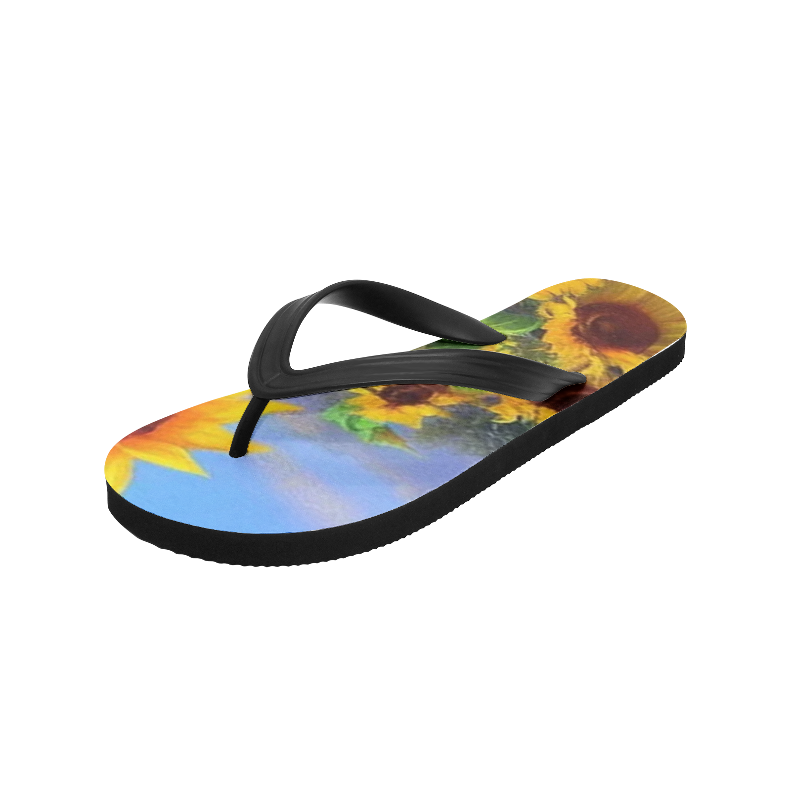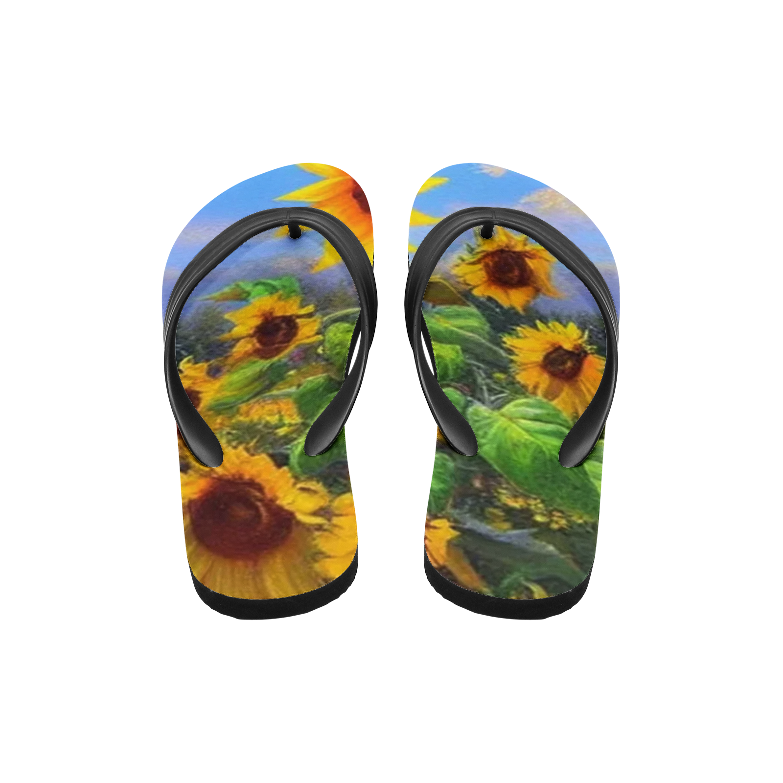 Soak up the sunny spirit with our Unisex Flip-flops in blooming sunflowers, designed specifically for free-spirited hippies who find joy in the beauty of nature. Each pair features a vibrant sunflower print, capturing the essence of sunny days and blooming fields. Crafted for comfort and durability, these flip-flops are perfect for festivals, beach days or simply adding a little floral glamor to your everyday strolls. Enter a world where every step brings you closer to the warmth and positivity of sunflowers. Let our blooming sunflower print flip-flops inspire your journey and light your path with every stride.