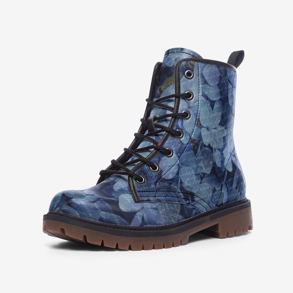 Emerald Blossoms - French Blue Hydrangea Casual Leather Lightweight Boots For Hippies