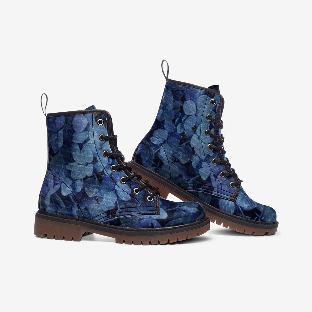 Introducing our French Blue Hydrangea Leather Lightweight Boot, where classic charm meets everyday comfort. Crafted from high-quality leather, these lightweight boots feature an interesting design decorated with blue French hydrangeas. Perfect for those who appreciate floral prints and timeless elegance, these boots offer both style and durability for urban adventures or casual outings. Show off your love for nature-inspired fashion and show off your unique style with these boots. Confidently step into any setting with boots that demonstrate your refined taste and appreciation of botanical beauty.