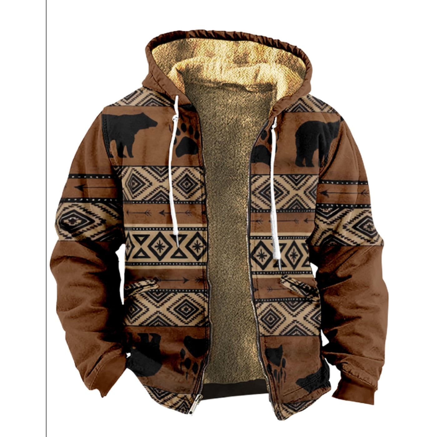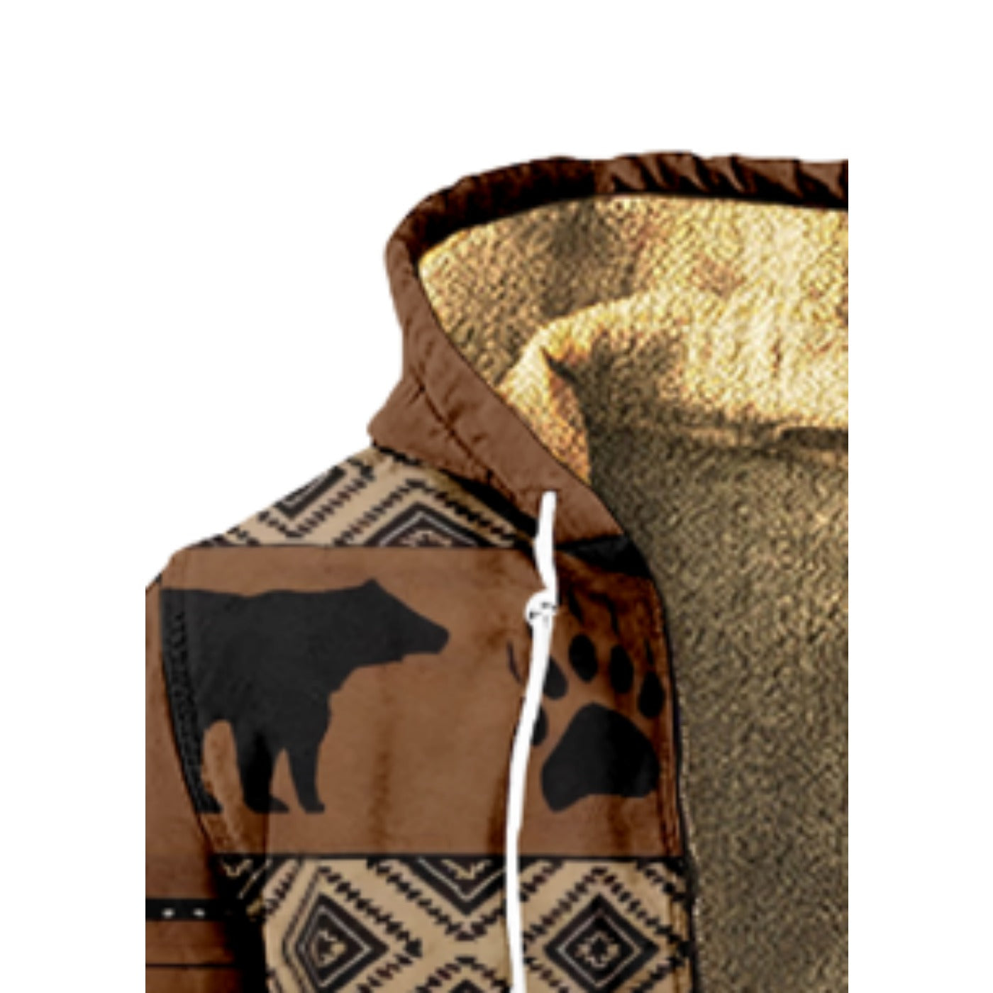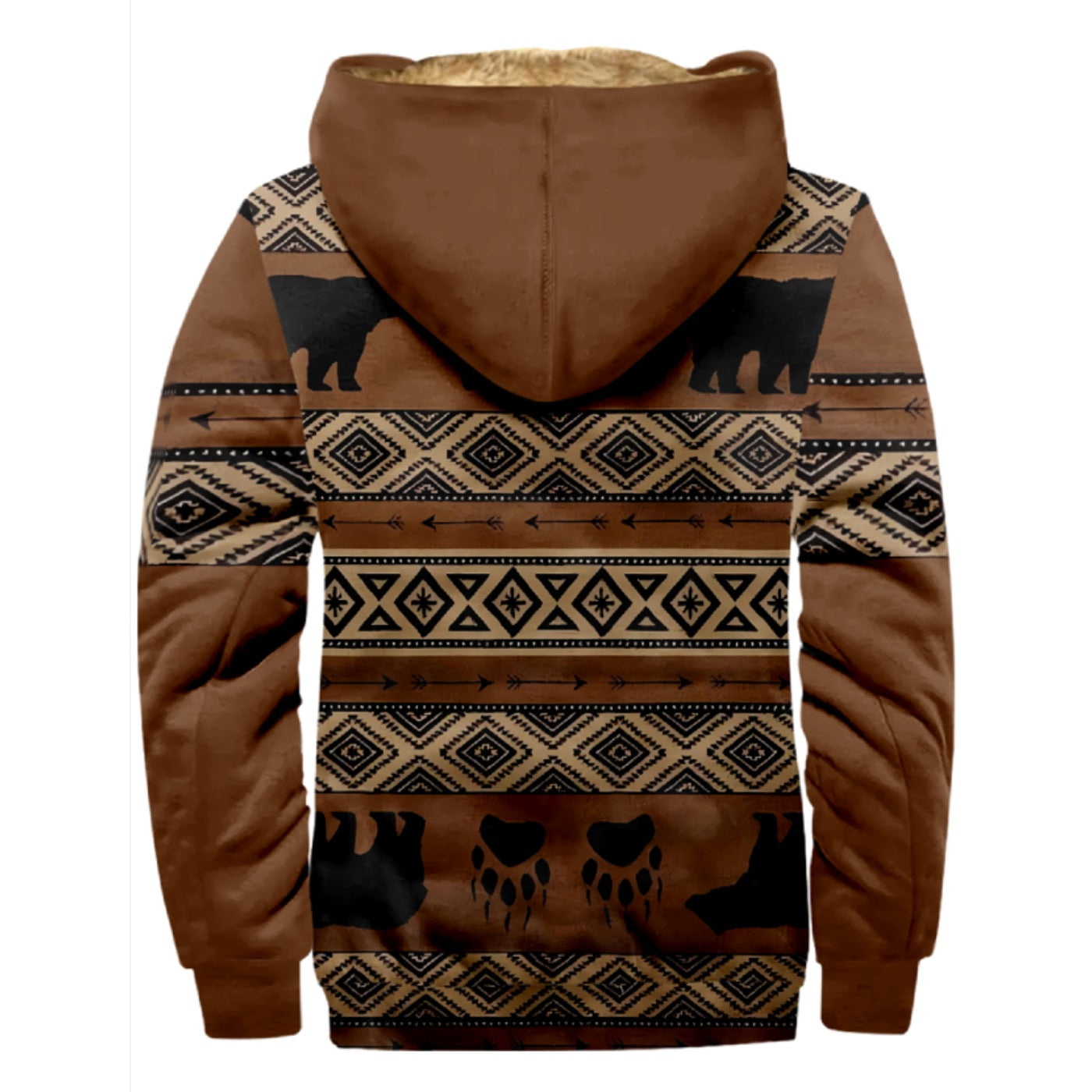 Showcase timeless heritage with our Brown Bear Vintage Native American Print Hooded Jacket, designed for the hippie free spirit. This cozy wool jacket features a sophisticated Native American print with a signature brown bear print, combining vintage charm with modern warmth and cultural elegance. Stay warm and stylish this autumn and winter with our Men’s and Women’s Thick Wool Hooded Double-Layer Jackets. Perfect for casual outings, these jackets offer: