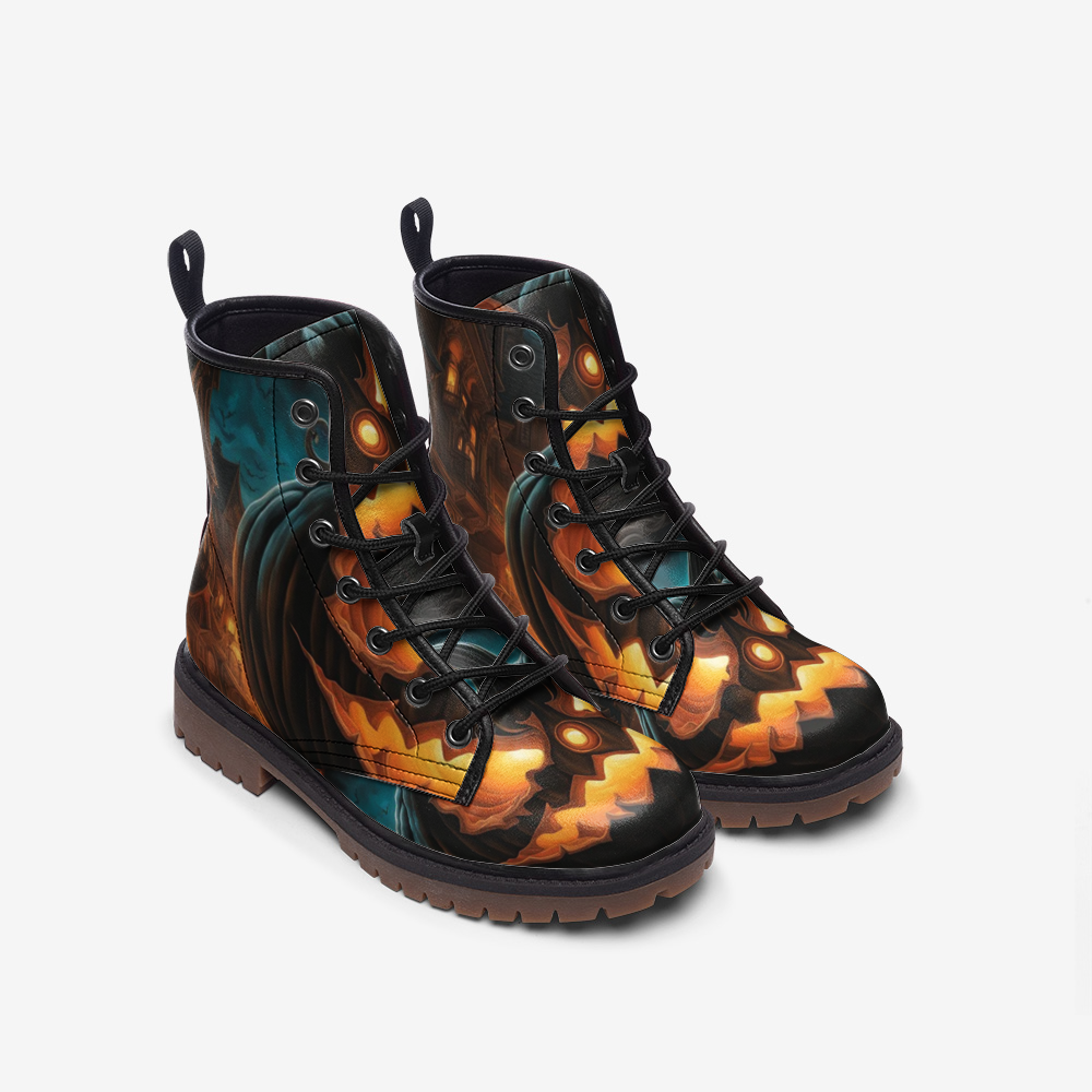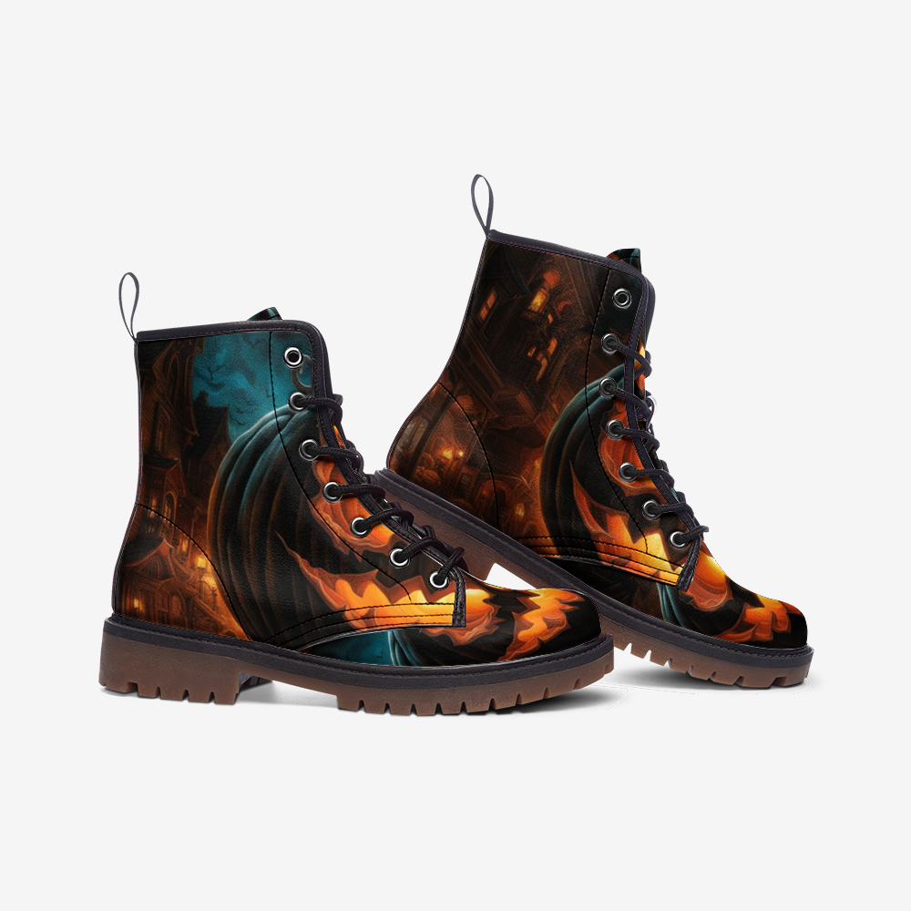 Get into the Halloween spirit with these fun pumpkin-themed Combat Boots! These casual leather boots combine a lightweight feel with durable construction, perfect for the hippie who wants to make a statement. Embrace the holiday season with a little whimsy while enjoying all-day comfort. Perfect for trick-or-treating or adding a unique twist to your everyday style!