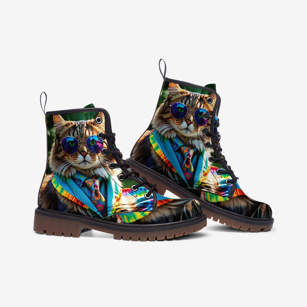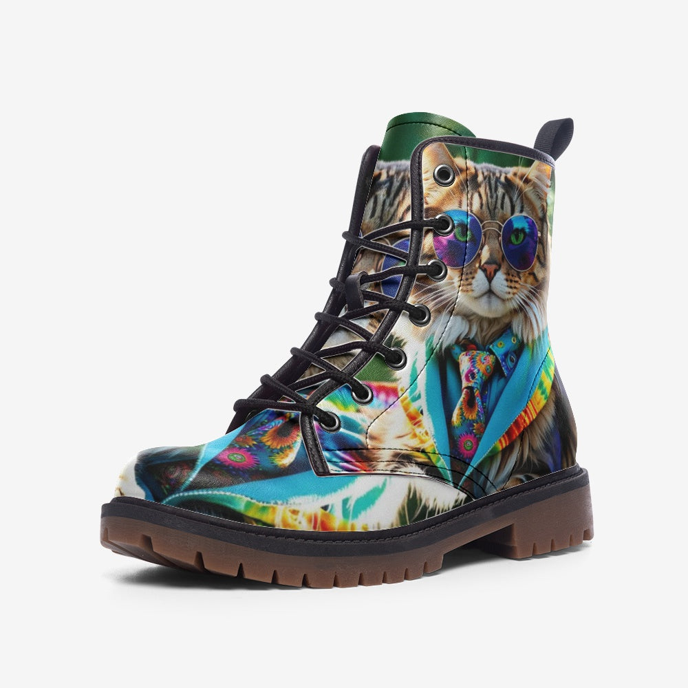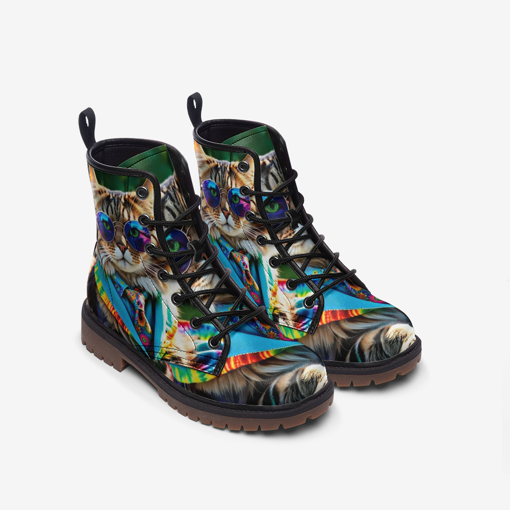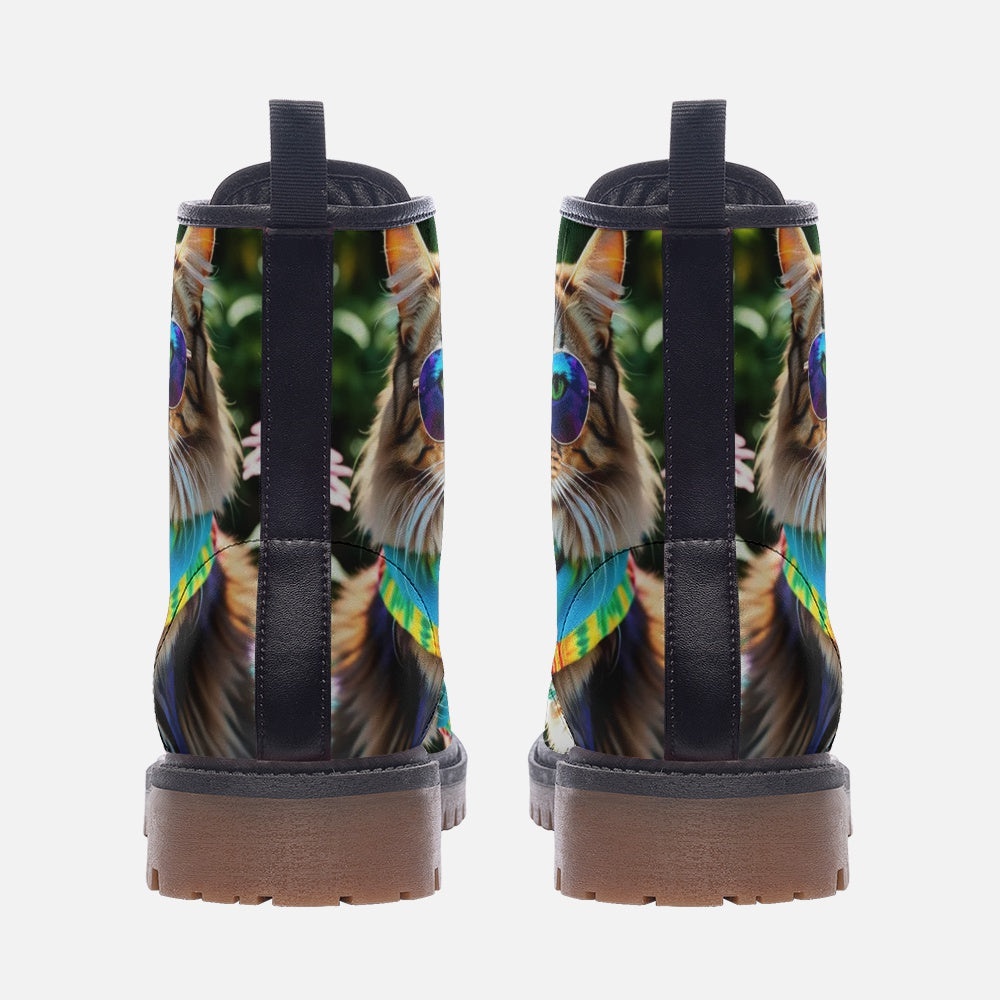 Emerald Blossoms - Cool Cat In Sunglasses Casual Leather Lightweight Boots For Hippies