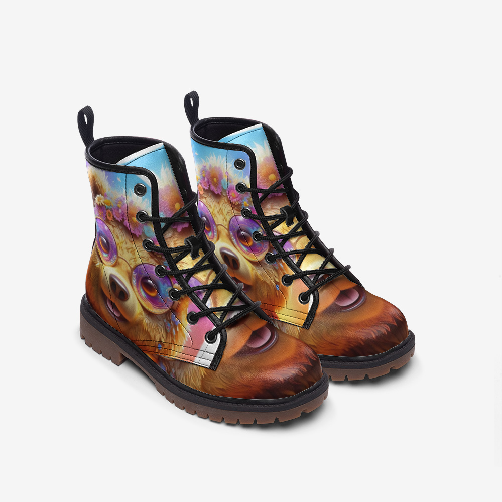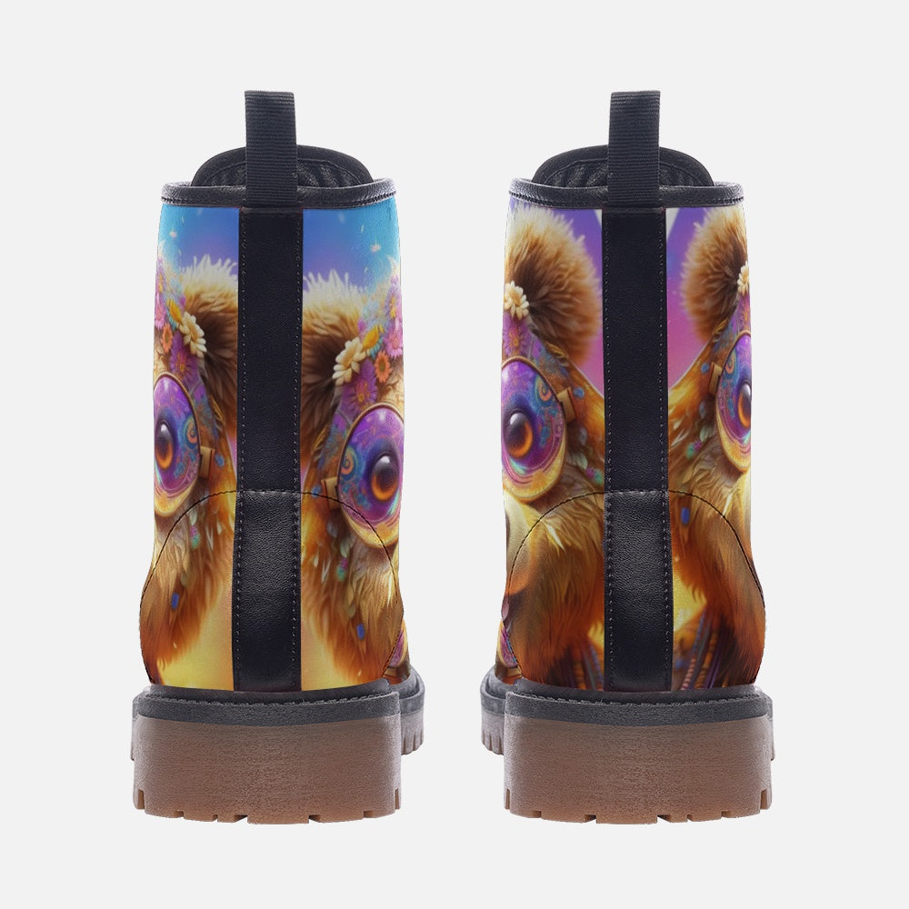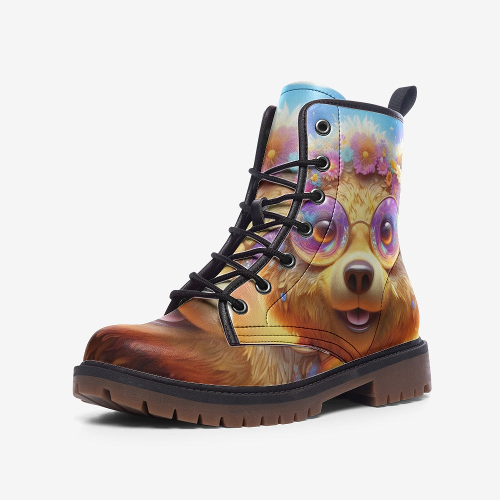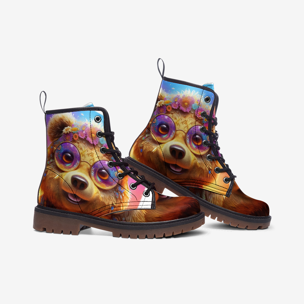 Add a touch of whimsy to your wardrobe with Emerald Blossoms' Cute Animated Teddy Bear boots. Infused with vibrant hippie style, these casual, lightweight leather boots feature charming teddy bear graphics that radiate playful, bohemian energy. Perfect for those who love to combine comfort with a splash of fun, they offer a unique, spirited twist on everyday footwear.
