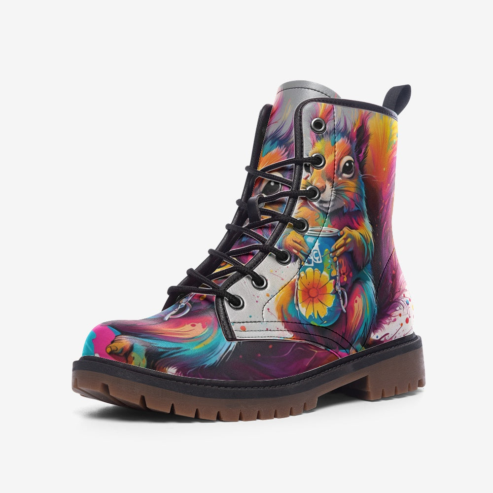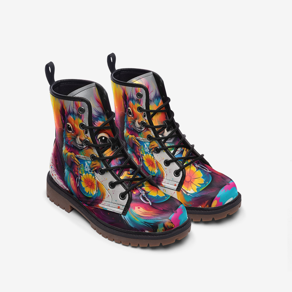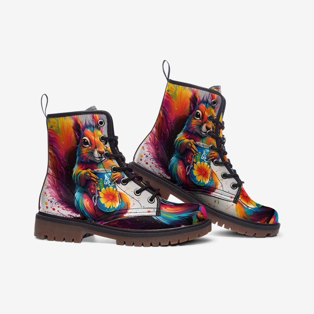 Emerald Blossoms - Cute Chipmunk Painting Casual Leather Lightweight Boots For Hippies