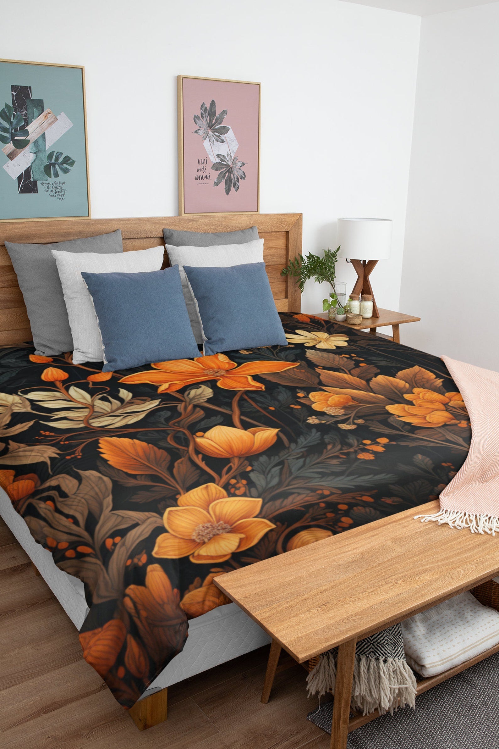 Embrace the mystical allure of autumn with the Emerald Blossoms Dark Academia Fall Leaves Bedding Set. Featuring an intricate forestcore design with falling leaves in rich emerald hues, this Halloween-inspired collection combines dark elegance with bohemian style. Perfect for creating a cozy, enchanting retreat, it brings a touch of seasonal magic to any hippie haven.