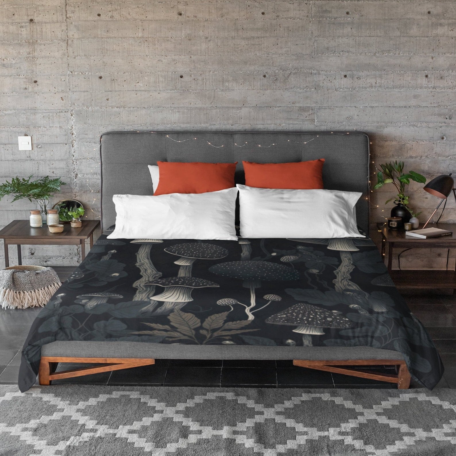 Step into the mystical world of the jungle with the Dark Academia Mushroom Bedding Set by Emerald Blossoms. This Gothic woodland inspired collection features an intricate mushroom pattern and rich emerald tones, combining the sophistication of the dark academy with the allure of bohemian style. Ideal for those who enjoy a cozy, enchanting retreat, this collection makes a unique and stylish addition to any hippie haven.