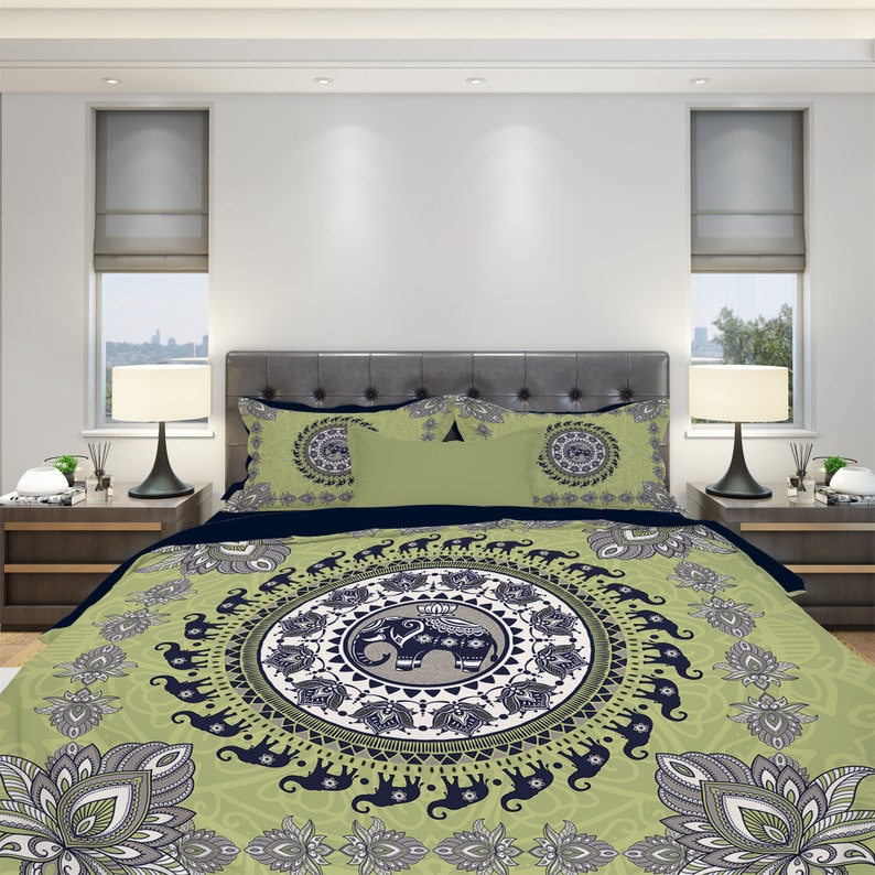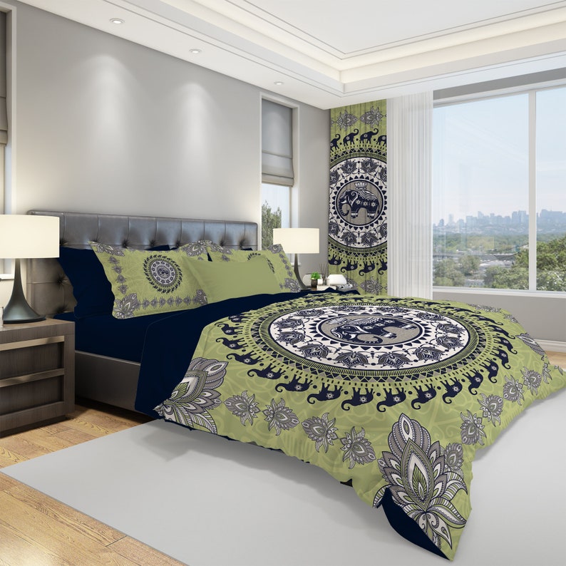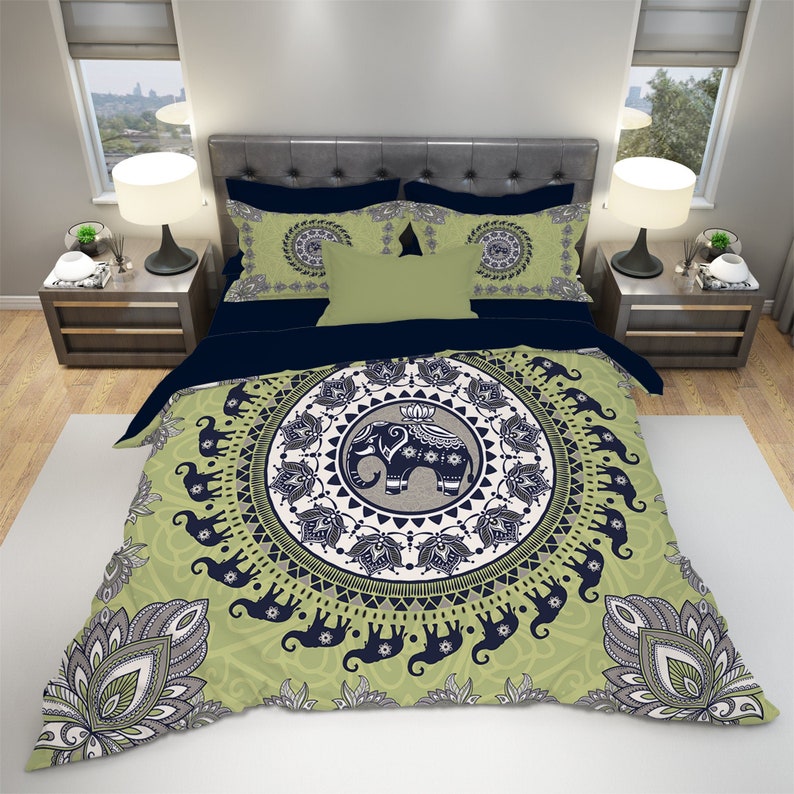 Add a touch of whimsical charm to your space with the Elephant Bohemian Bedding Set. Designed for the free-spirited and boho-loving, this set features an intricate elephant motif and vibrant pattern that evokes a sense of adventure and serenity. Crafted from soft, high-quality fabrics, it ensures cozy comfort while bringing an artistic, playful touch to your bedroom.