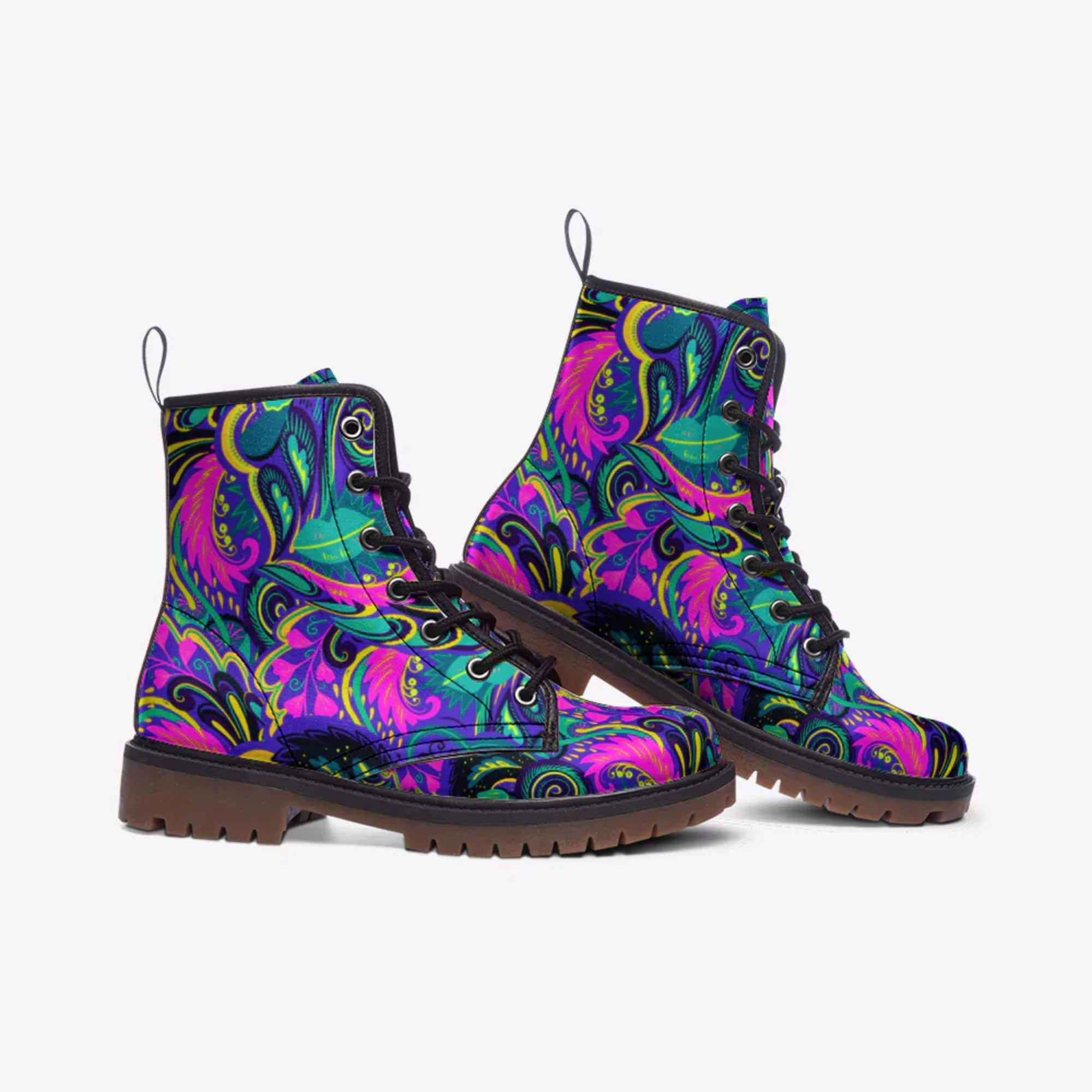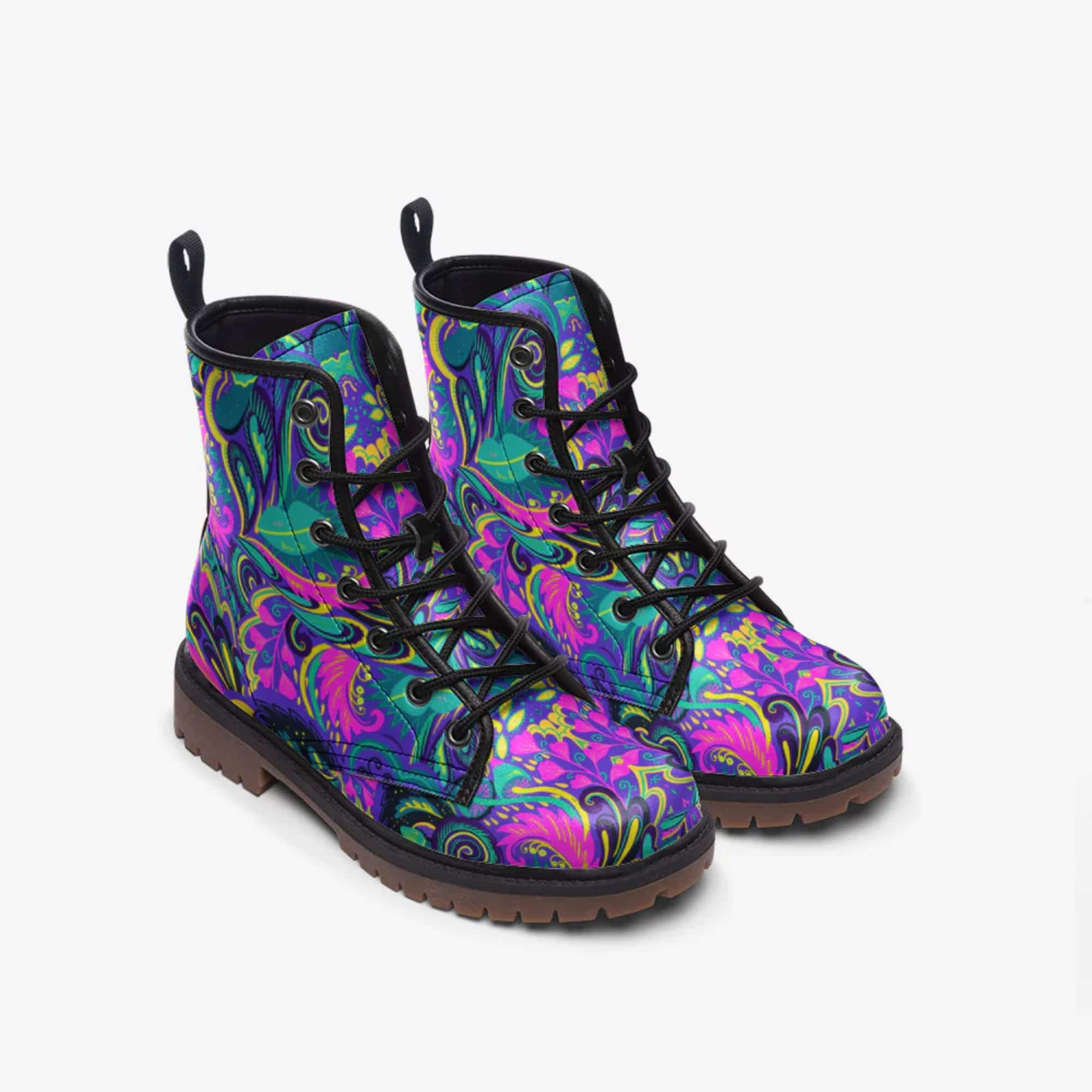 Discover the perfect blend of edgy and whimsical with our Abstract Floral Leather Shoes. Go boho-hippie chic with these trendy combat boots featuring a delicate floral pattern. Crafted from high-quality leather, they provide durability and comfort while creating bold fashion. Ideal for festivals or everyday wear, these boots add unique style to any outfit. Step out with confidence and express your personality with our Abstract Floral Leather Shoes.