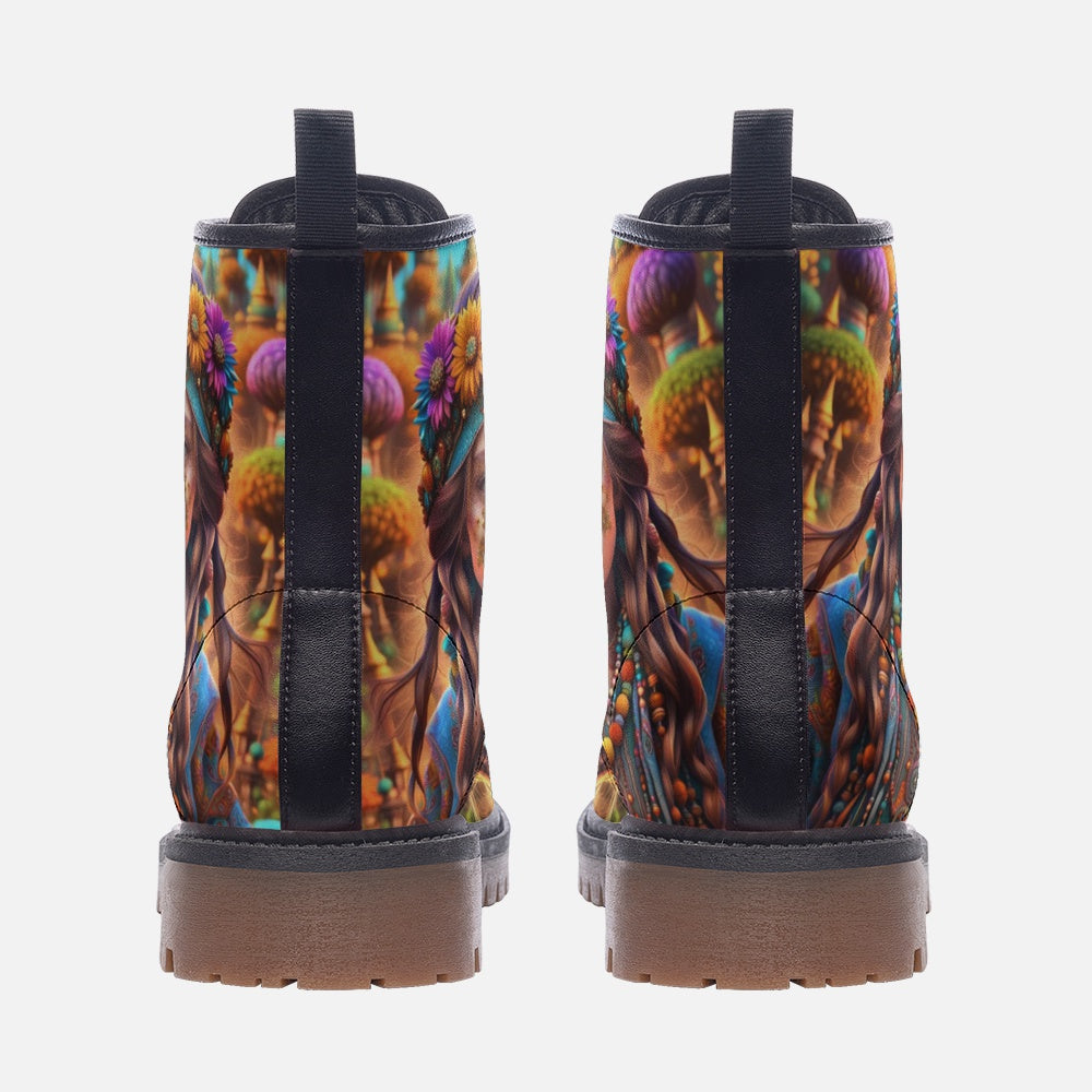 Embrace your bohemian spirit with the Emerald Blossoms Flower Child Boots. Featuring a vibrant flower child design that celebrates the essence of boho chic, these casual leather boots are lightweight and designed for all-day comfort. Perfect for those who live and breathe the hippie lifestyle, they offer a stylish yet comfortable look for any adventure. Step into these boots and let your free spirit bloom.