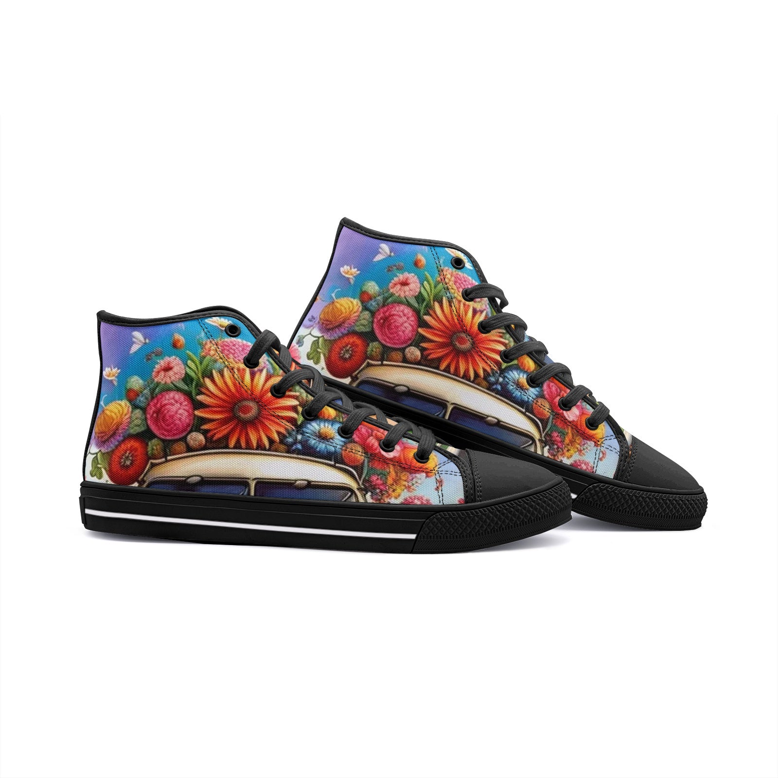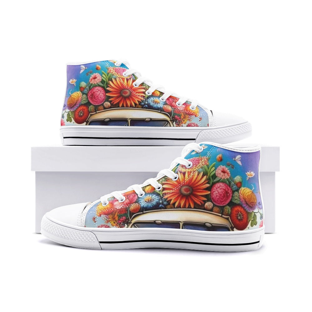 Emerald Blossoms - Flower Garden, Ride Along Nature Unisex High Top Canvas Shoes Boots For Hippies