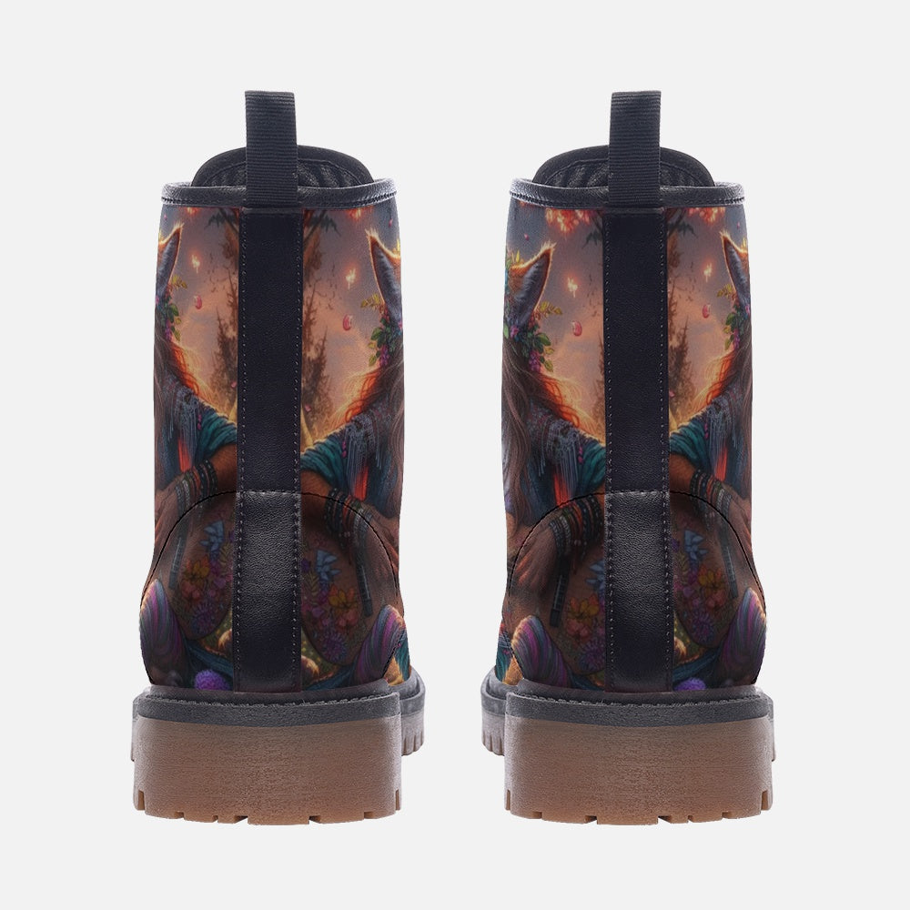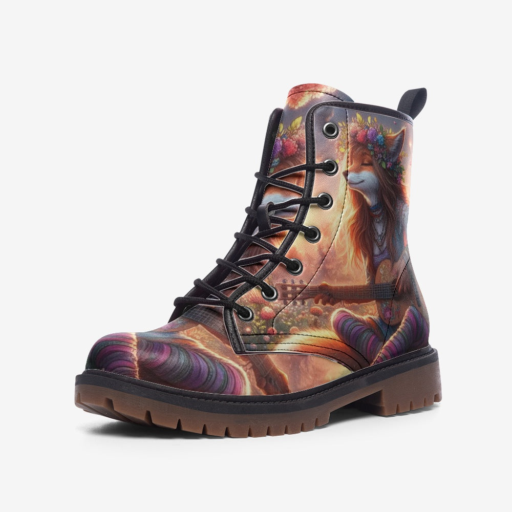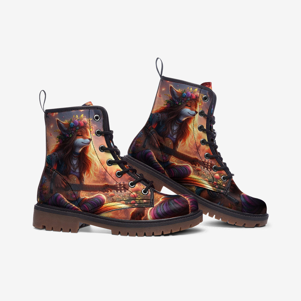 Emerald Blossoms - Foxy Girl Artwork On Casual Leather Lightweight Boots For Hippies