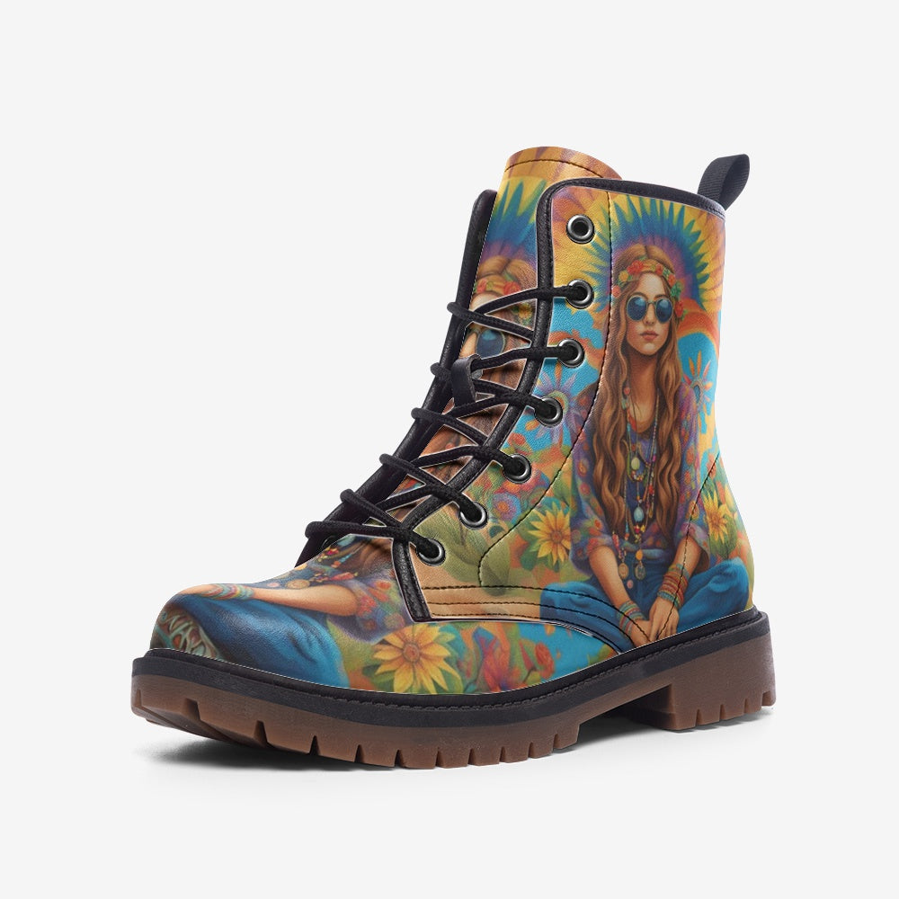 Emerald Blossoms - Girl With Rainbow Behind Casual Leather Lightweight Boots For Hippies