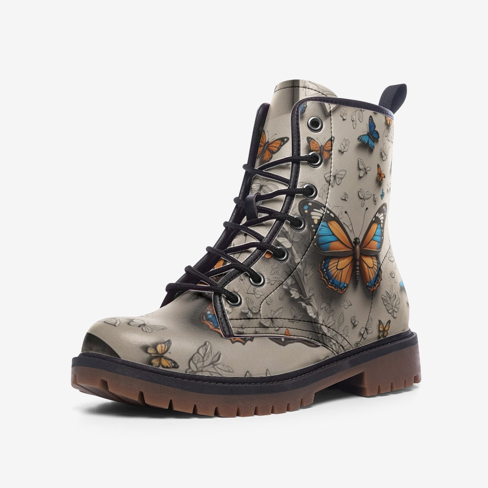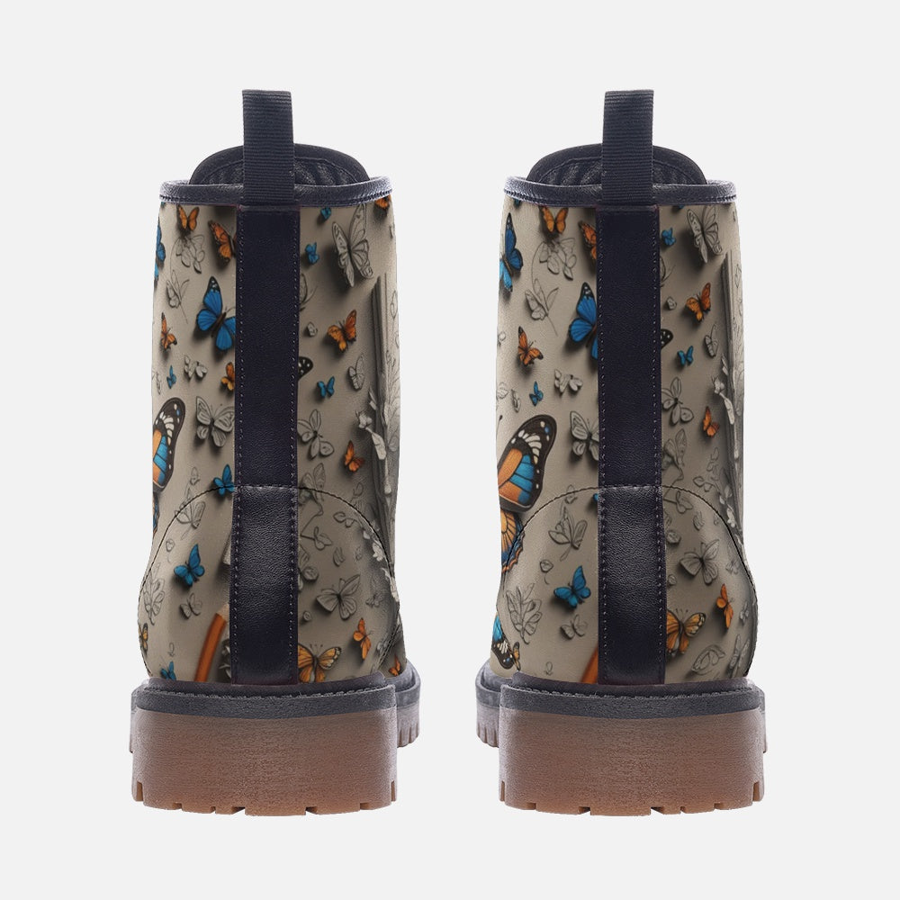 Emerald Blossoms - Gothic Butterflies Art Casual Leather Lightweight Boots For Hippies