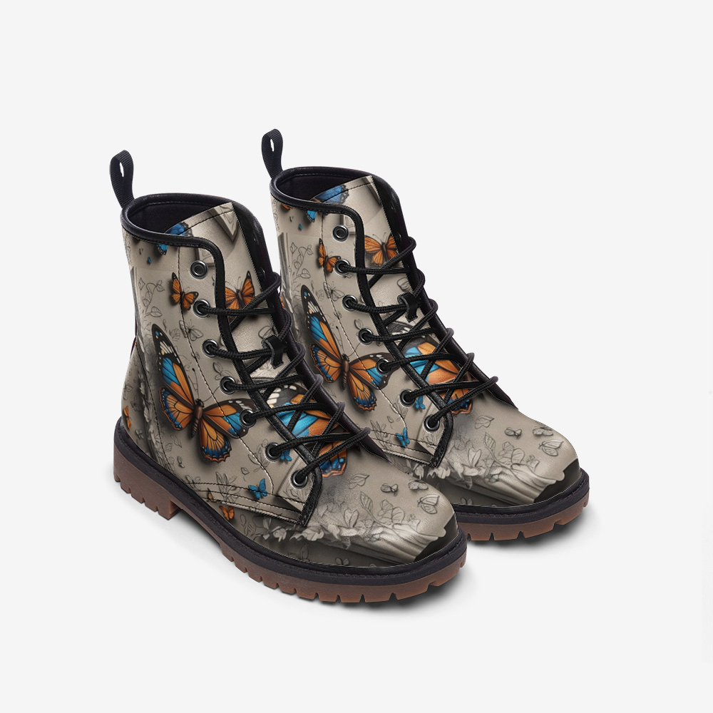 Show off dark elegance with the Emerald Blossoms Gothic Butterfly Art Lightweight Leather Boots. These boots feature an intricate Gothic butterfly design, blending beauty with a touch of mystery. Perfect for those who appreciate unique, artistic shoes that make a bold fashion statement.