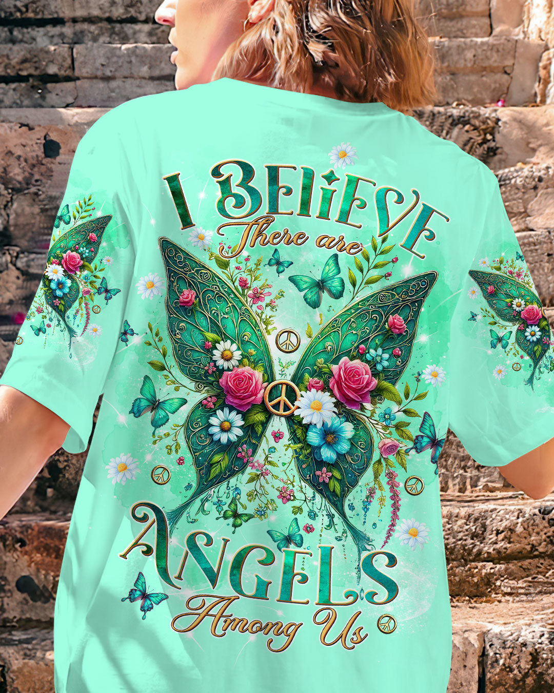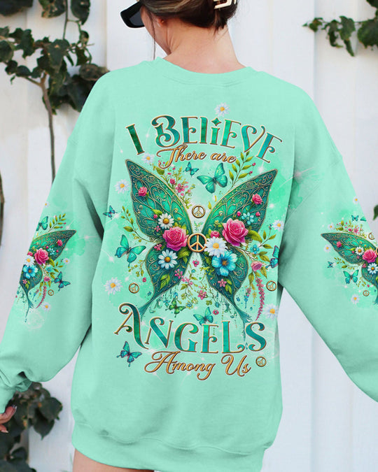 Emerald Blossoms - I Believe There Are Angels Among Us Wings All Over Print Shirt For Hippies