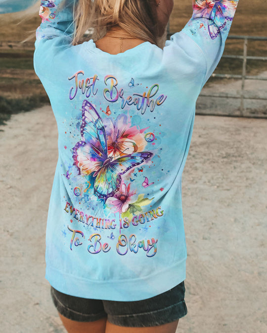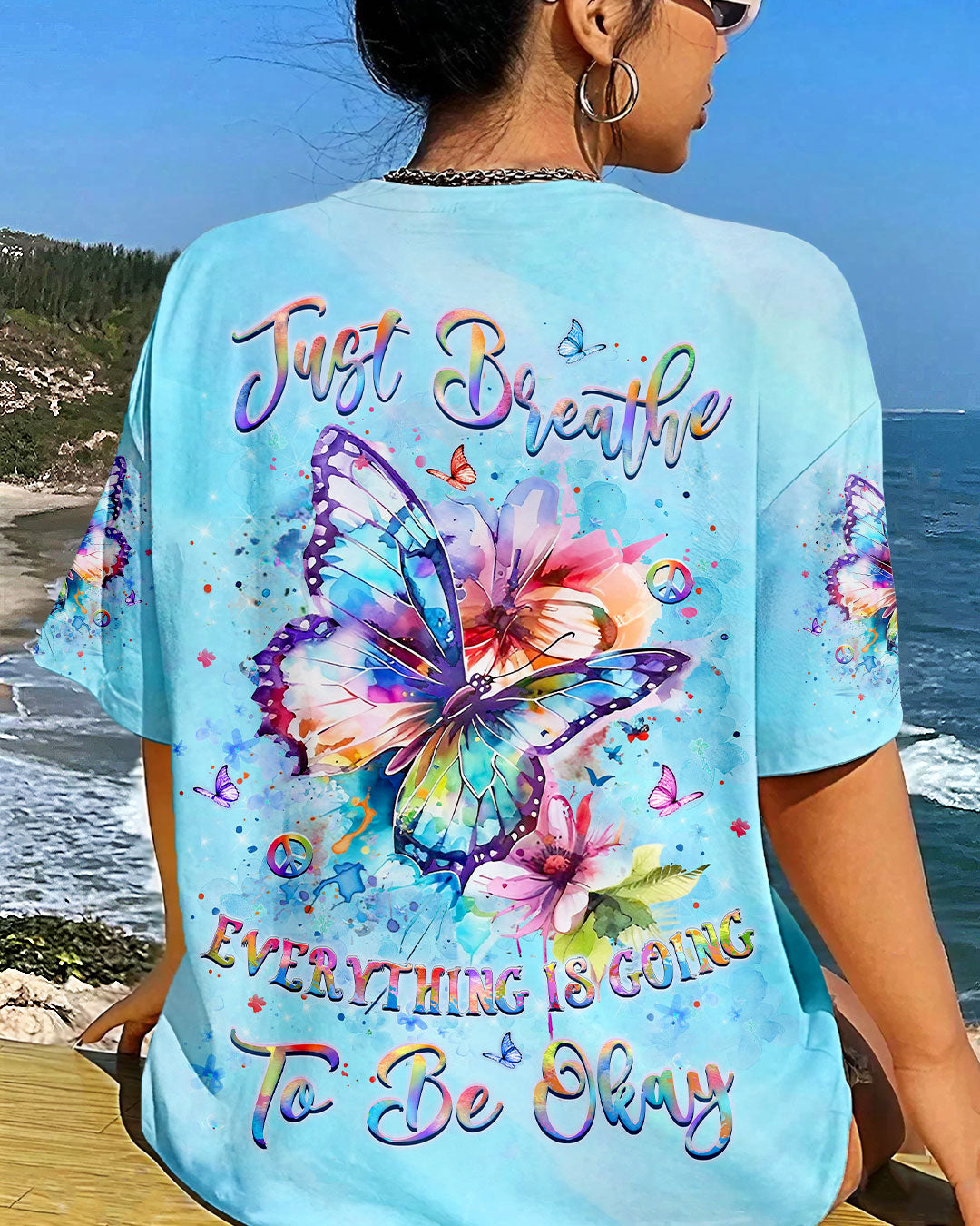 "Just Breathe" Butterfly All Over Print shirt captures the essence of tranquility with its serene design. Featuring delicate butterfly motifs throughout, this shirt radiates a calming vibe. Crafted for comfort and adorned with intricate patterns, it's perfect for those who appreciate mindfulness in their everyday attire. Embrace the soothing beauty of nature with this unique and expressive piece.