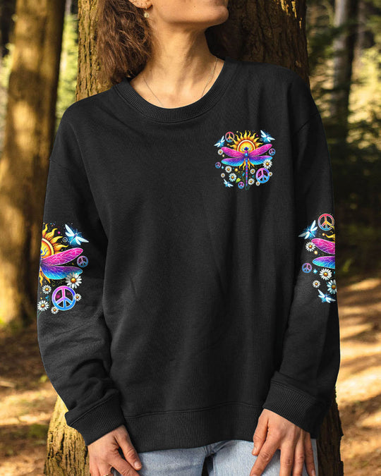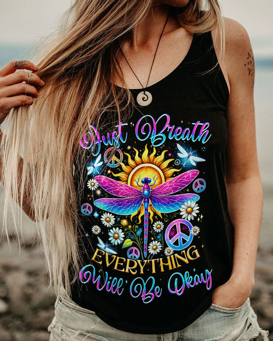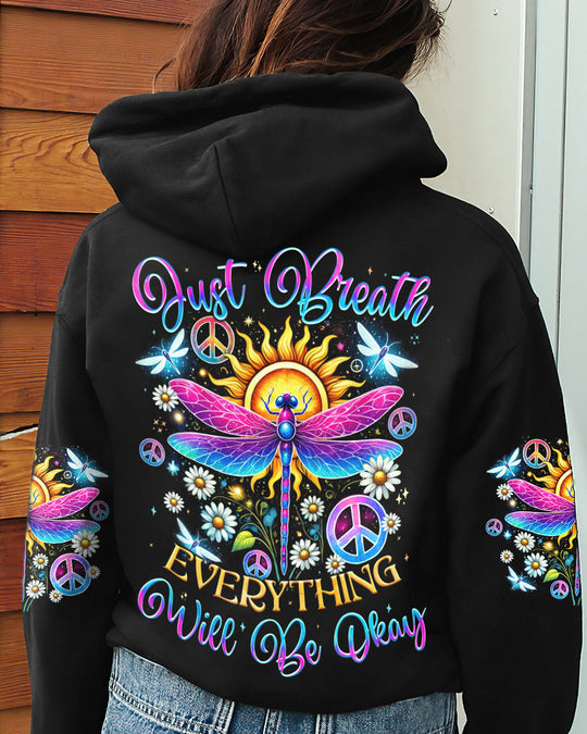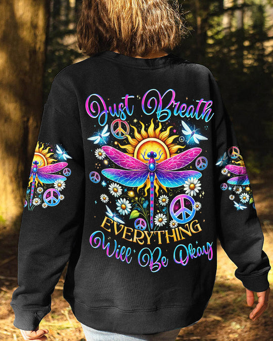 Soak up the tranquility with our Dragonfly All Over Print "Just Breathe" shirt. Featuring a serene dragonfly motif all over, this shirt exudes a calming feel. Crafted for comfort and adorned with intricate designs, it's perfect for those who seek peace and mindfulness in everyday wear. Embrace the soothing essence of nature with this unique and expressive piece.