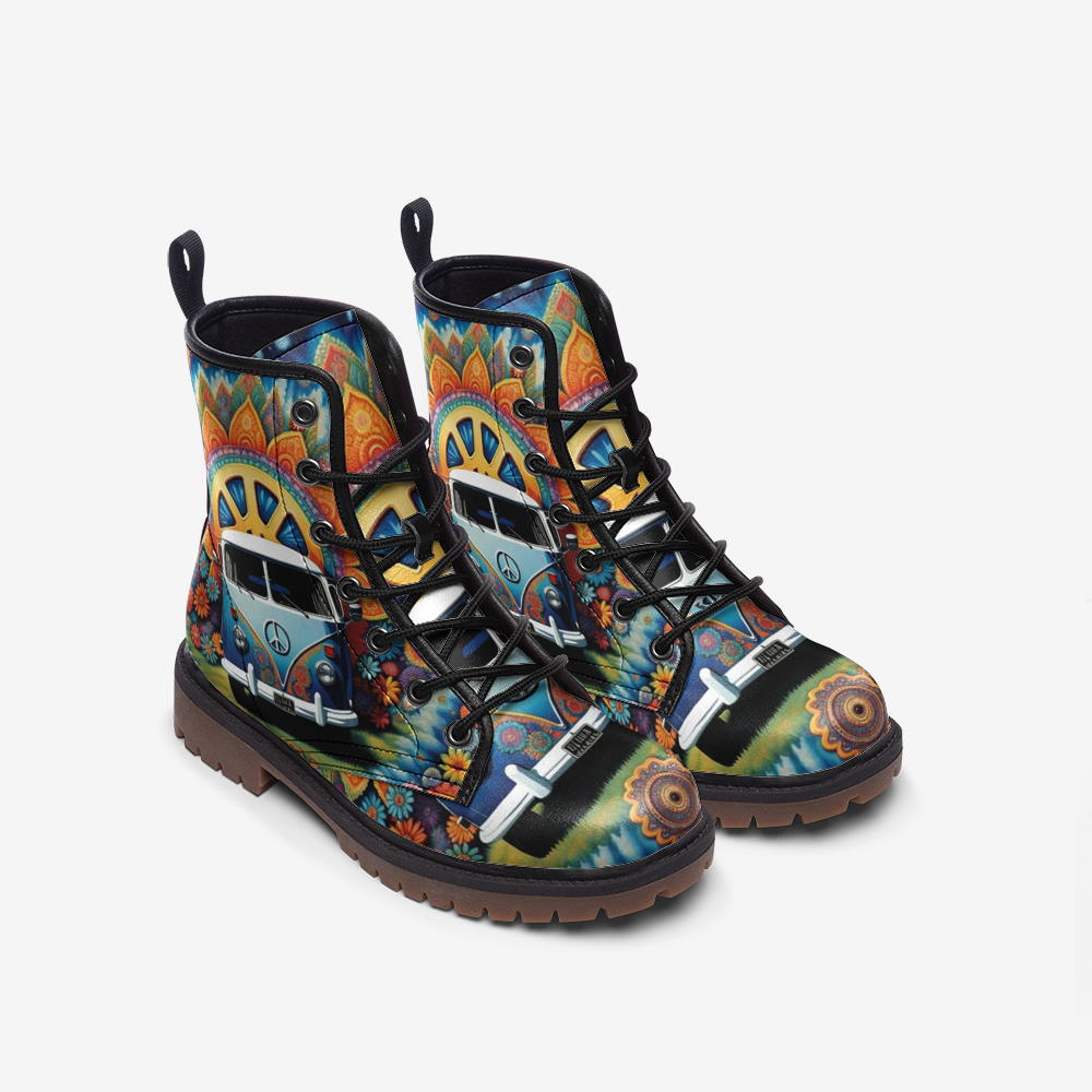 Embrace the spirit of adventure with the Emerald Blossoms Kombi Van for Road Trips lightweight leather boots. Designed for the free-spirited traveler, these boots feature a retro Kombi van print, perfect for those who love the road and spontaneous trips. Crafted from premium lightweight leather, they offer durable comfort for long days on the road. Celebrate your love of road trips and casual style with these unique boots, making every step an expression of your passion for travel and your laid-back lifestyle. Ideal for exploring new places or adding a touch of adventure to your everyday style.
