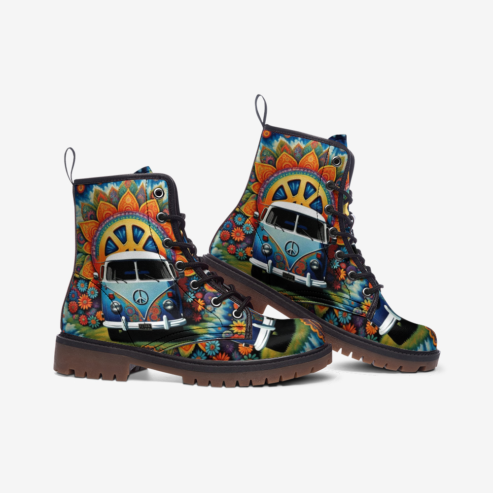 Emerald Blossoms - Kombi Van For Road Trips Casual Leather Lightweight Boots For Hippies