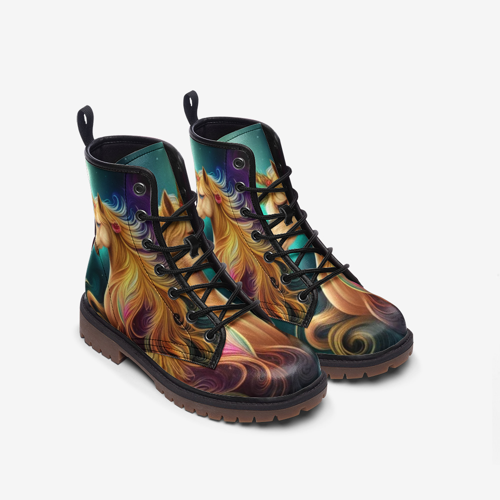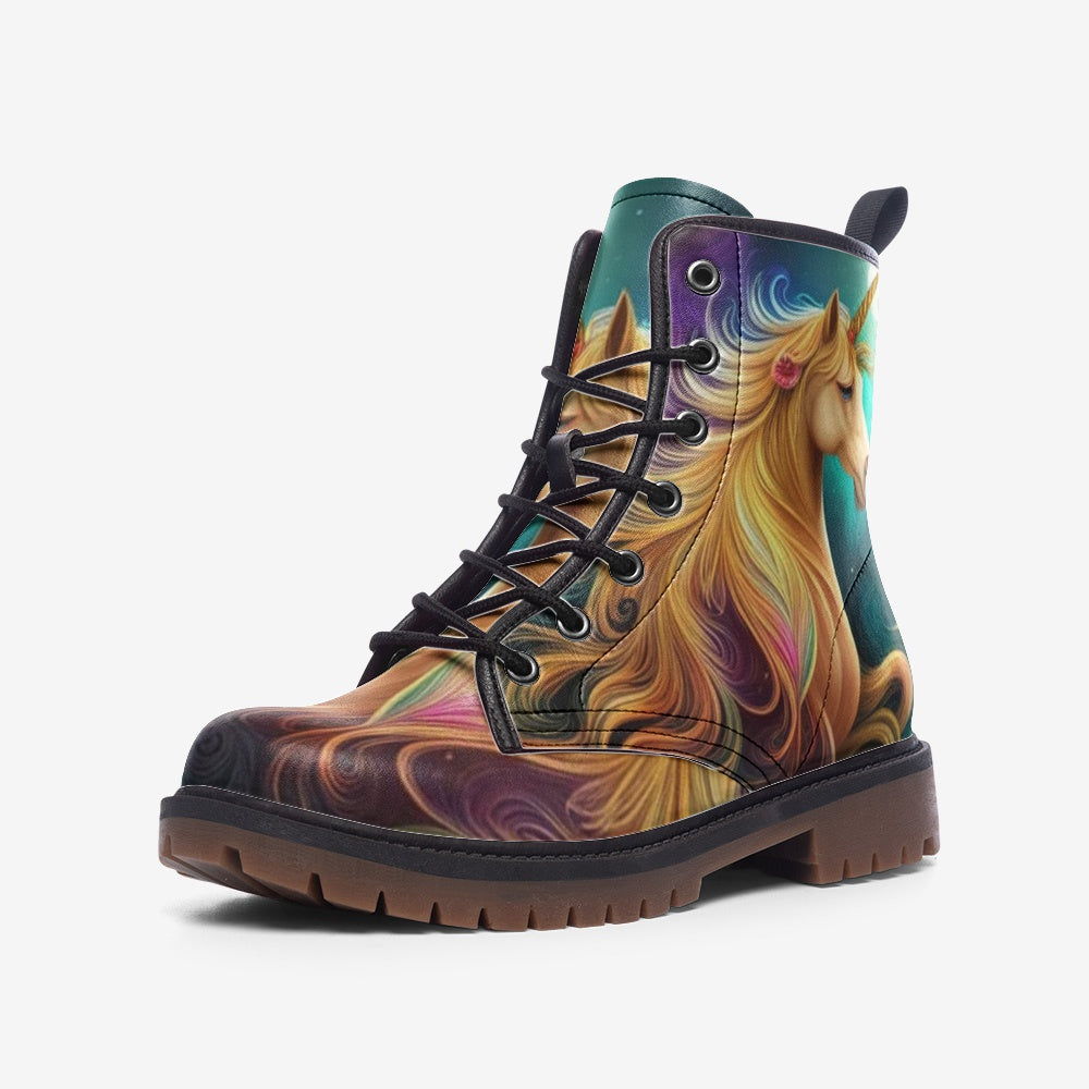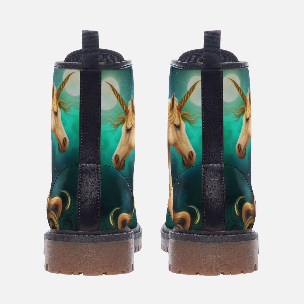 Emerald Blossoms - Magical Unicorn Casual Leather Lightweight Boots For Hippies
